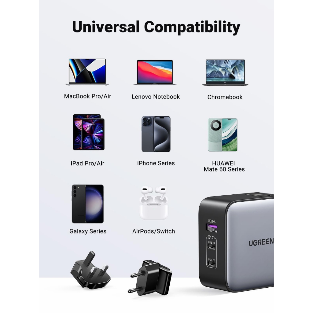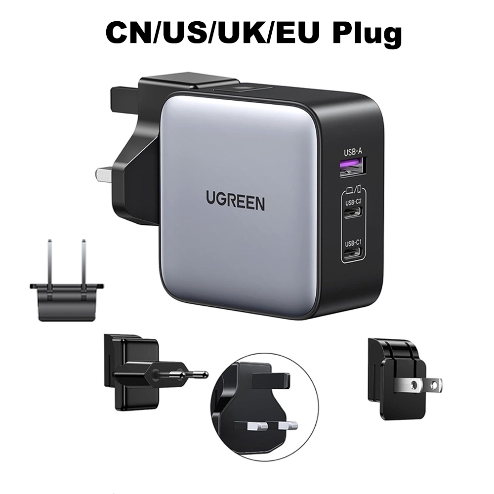 UGREEN 65W 3-Port Global Travel Adapter | US/UK/EU Plugs for Fast Charging All Your Devices Abroad