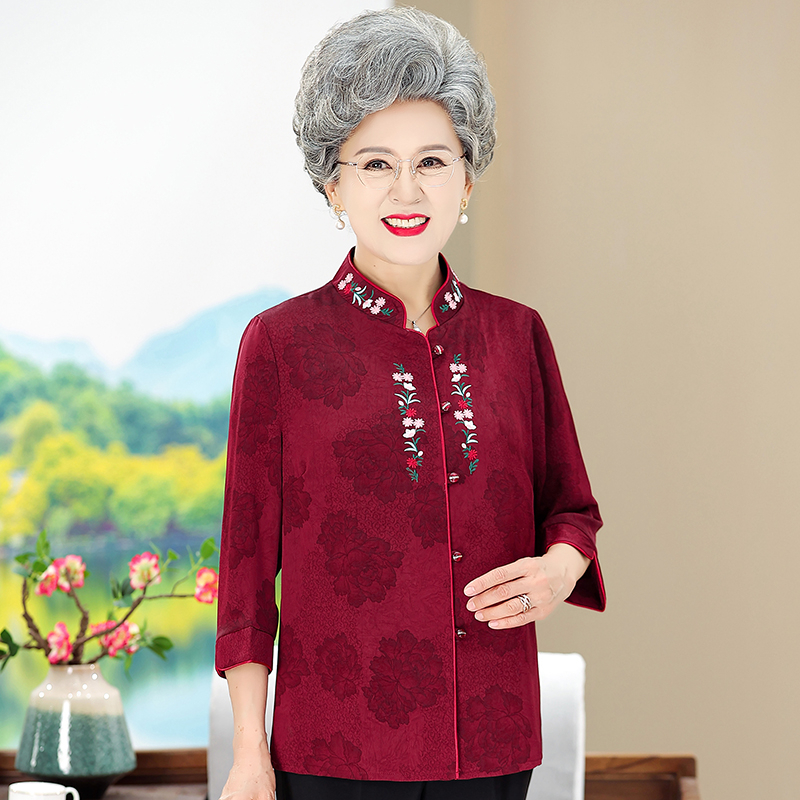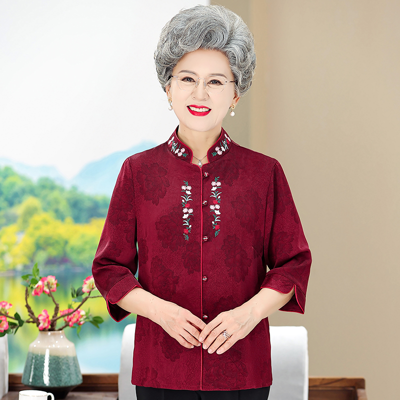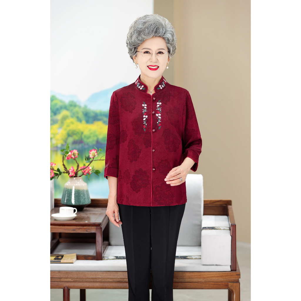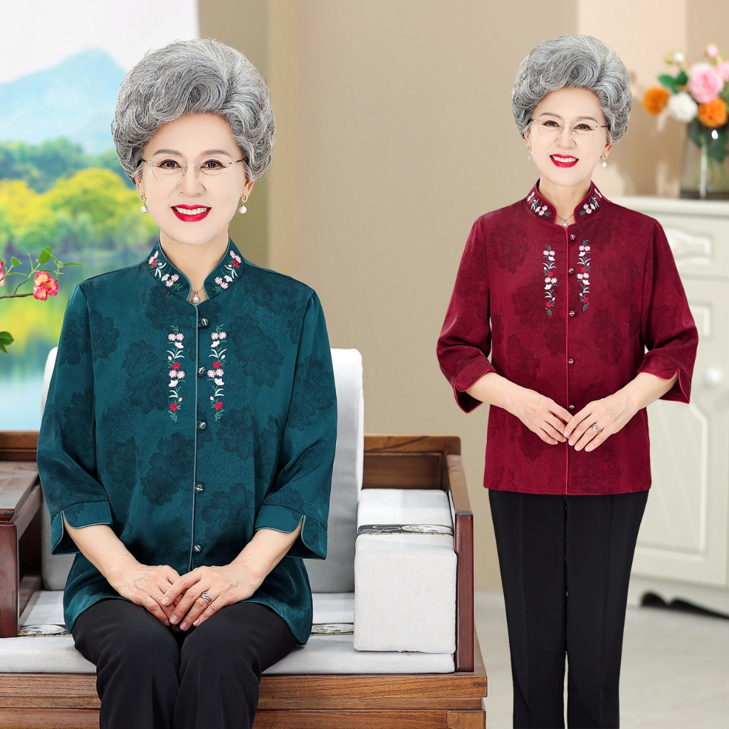 Elderly Clothes Grandma Tang Chinese Blouse 3/4 Sleeve Cheongsam For Middle-aged Ladies 50 60 70 80 Years Red Green Purple 4XL 5XL 女装 衬衫 套装 唐装 中国衣服