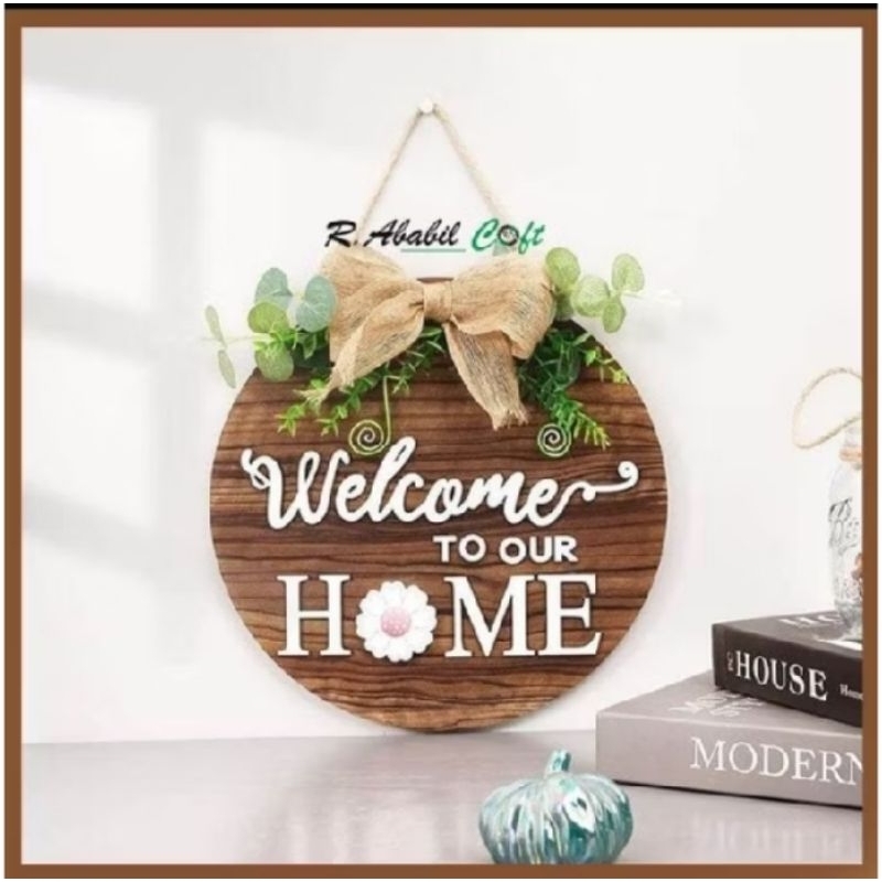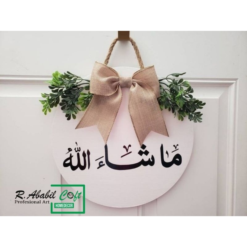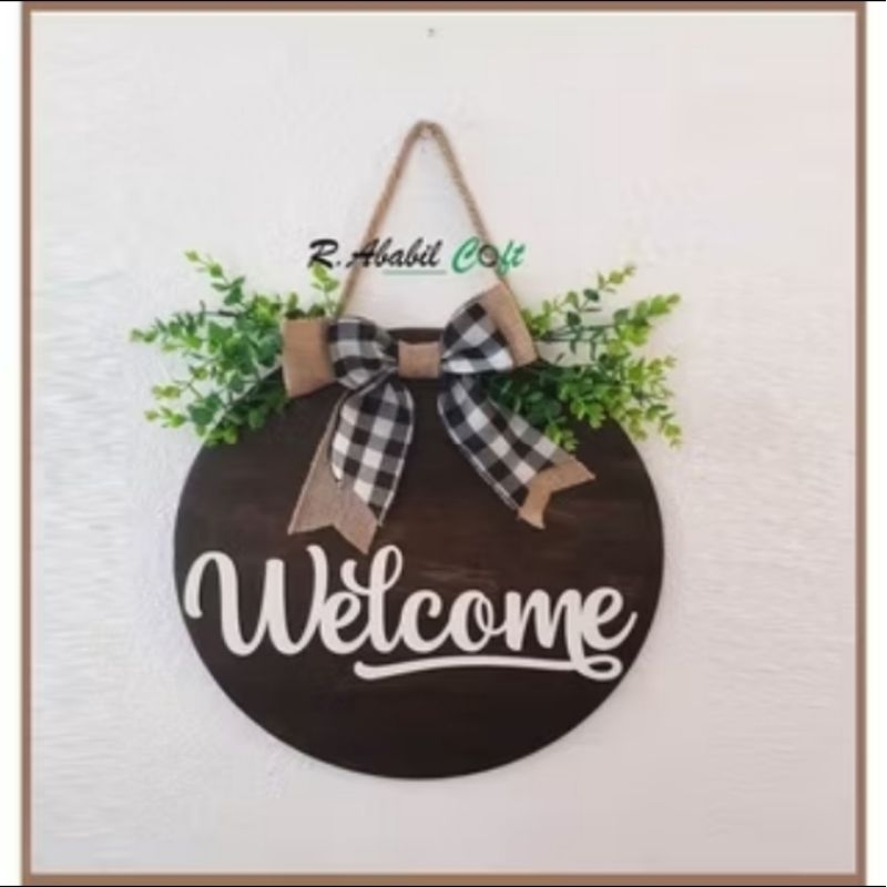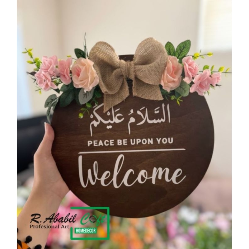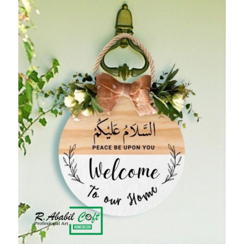 Aesthetic Assalamualaikum Welcome door decoration, round shape with Artificial leaves