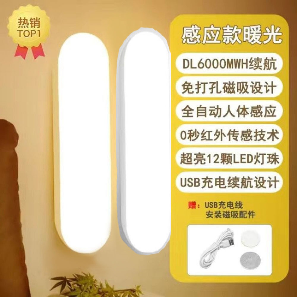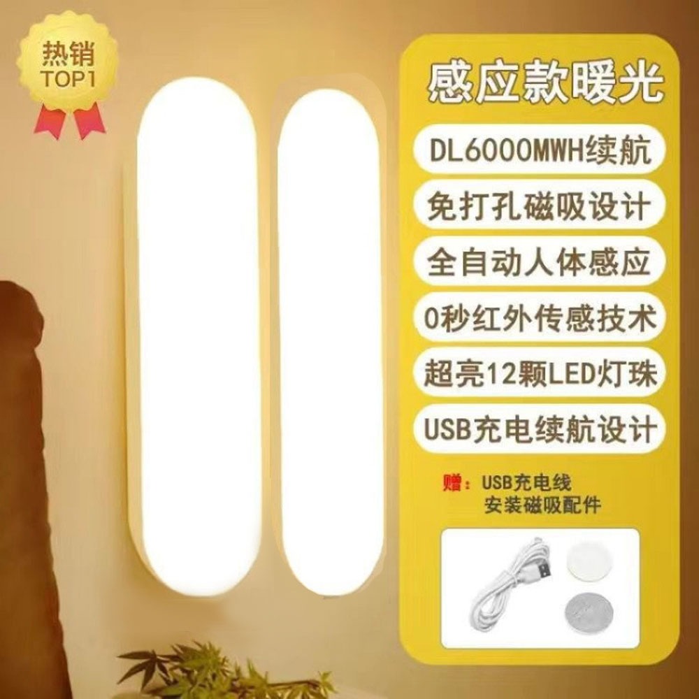 2PCS 14cm Rechargeable Sensor Night Light Wireless Body Induction Lamp Motion Sensor Light USB charging LED Night Light