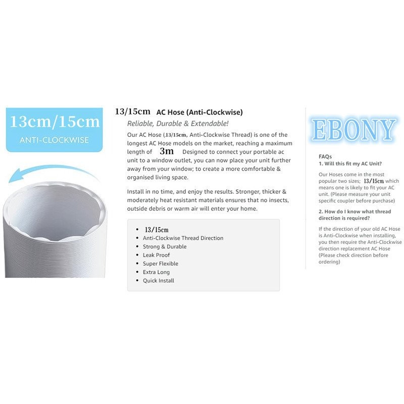 【SG SELLER LOCAL STOCK】 portable aircon hose/aircon hose/aircon pipe/3M Flexible Air Conditioner Exhaust Pipe Vent Hose Duct Outlet 130/150mm PKWC