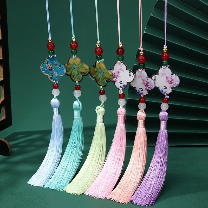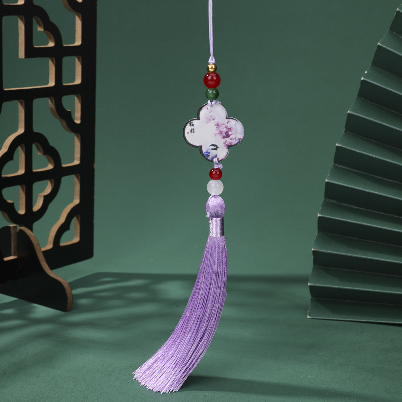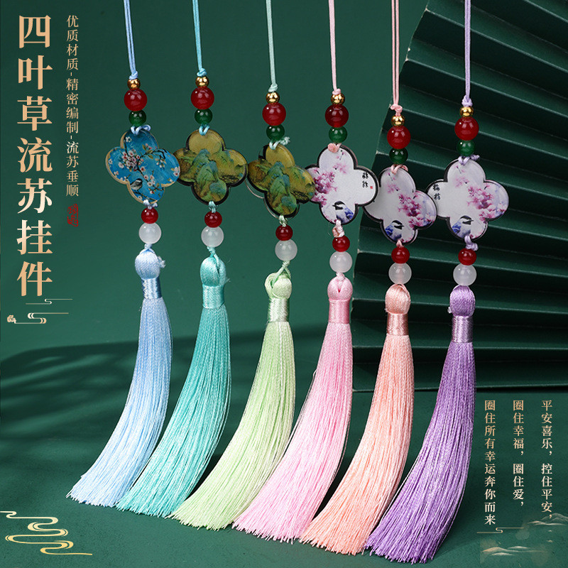 Traditional Chinese Style Four-Leaf Clover Tassel Chinese Style Retro Qipao Mamian Skirt Waist Belt Pressed Collar diy Scented Sachet Fan Pendant Small Tassel AJZU