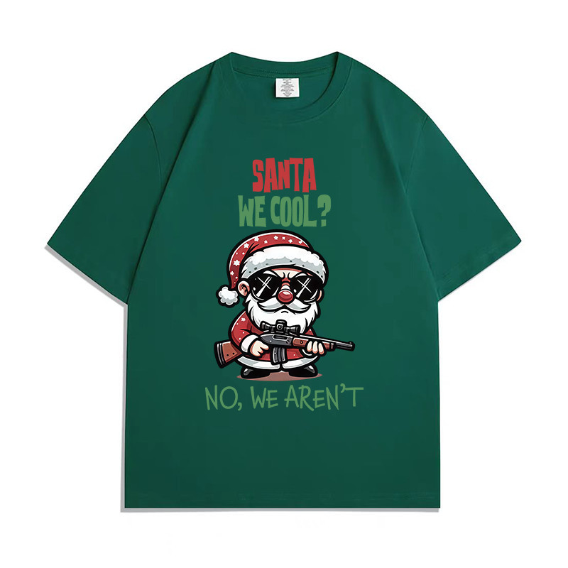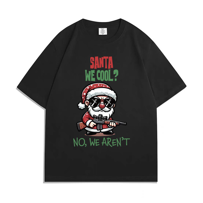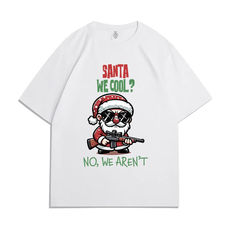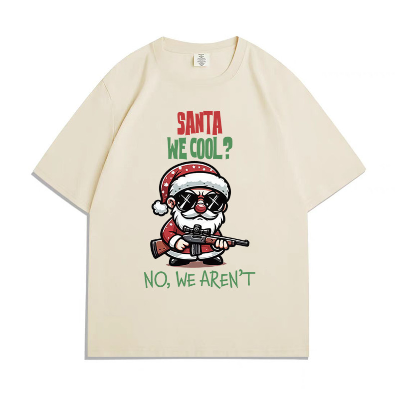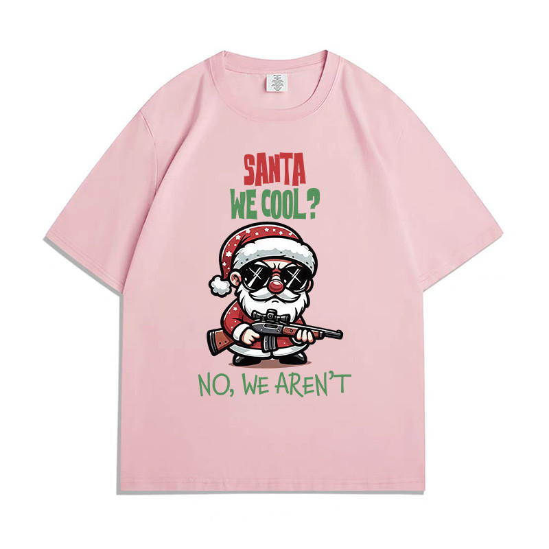 ACE BEAUTY Brand New Cotton Unisex Korean T-shirt Merry Christmas Santa Claus Printing Men and Women Tops新款圣诞老人印花宽松短袖