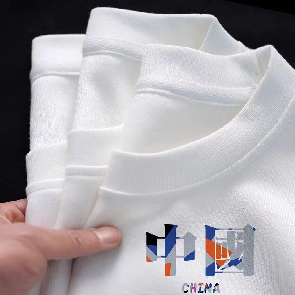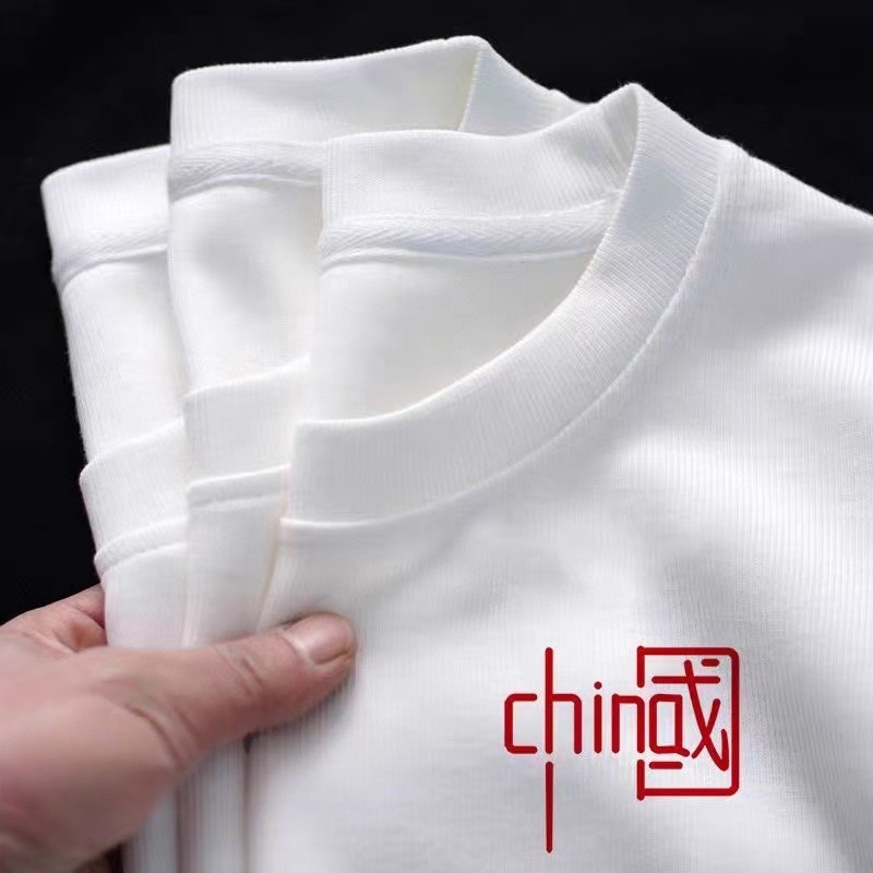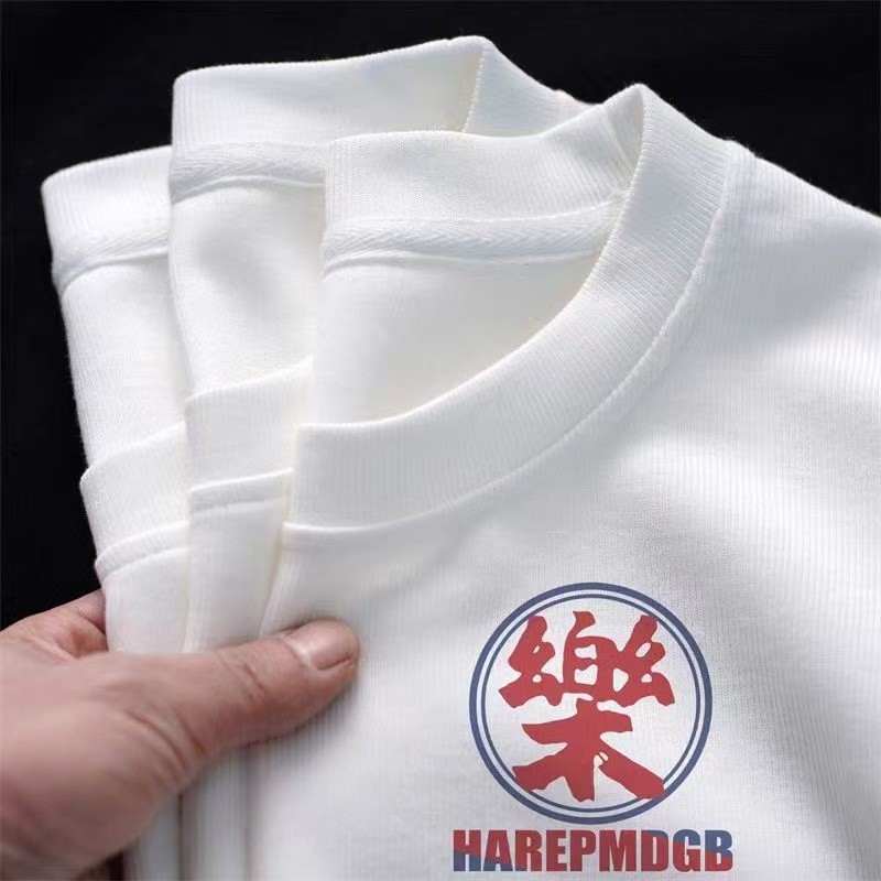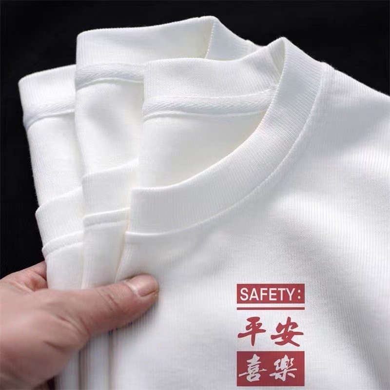 ACE BEAUTY COTTON New Brand Unisex Cartoon Chinese Print Ins Korean Version Woman T-shirt LIVE简约中文图案白色短袖