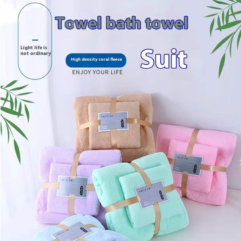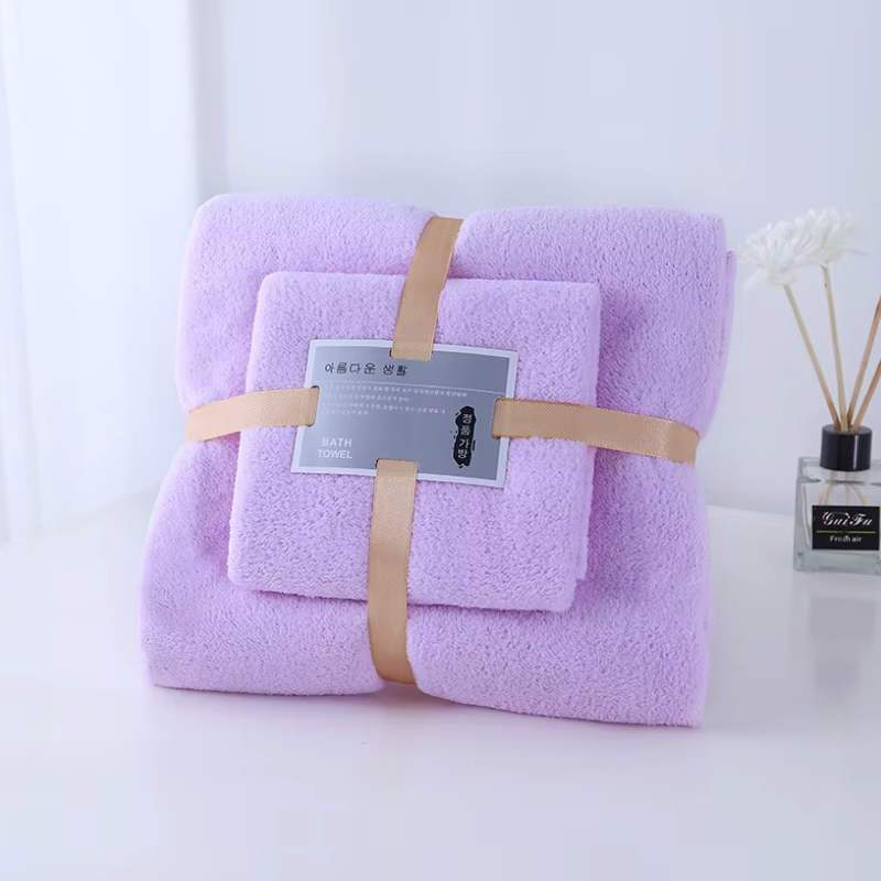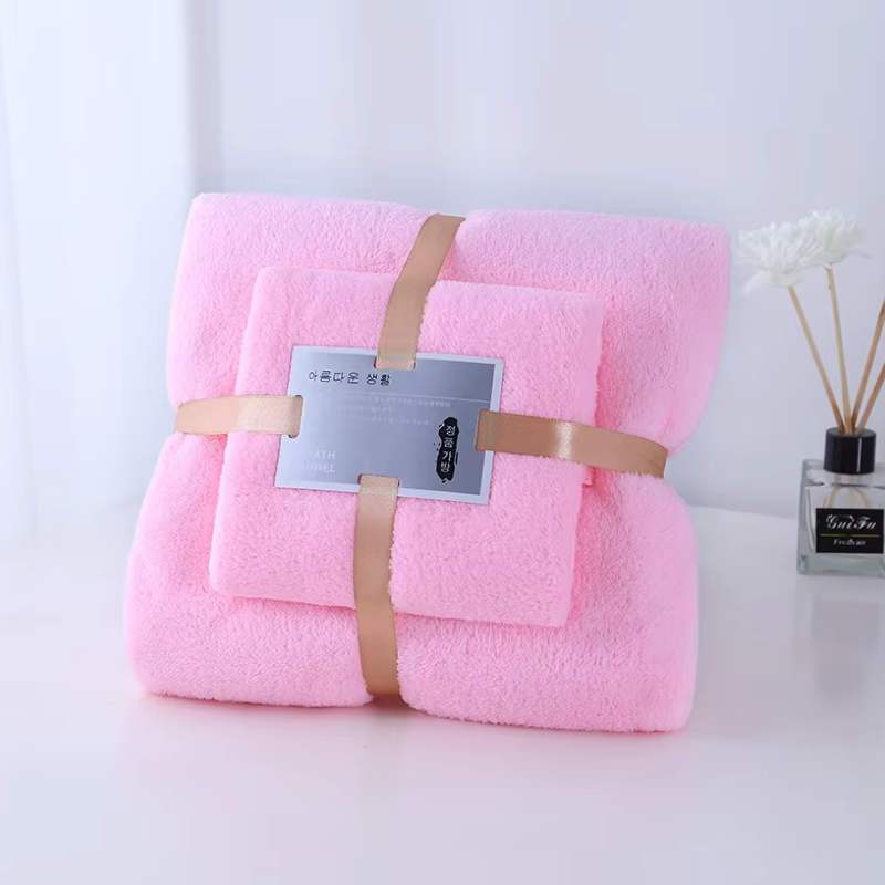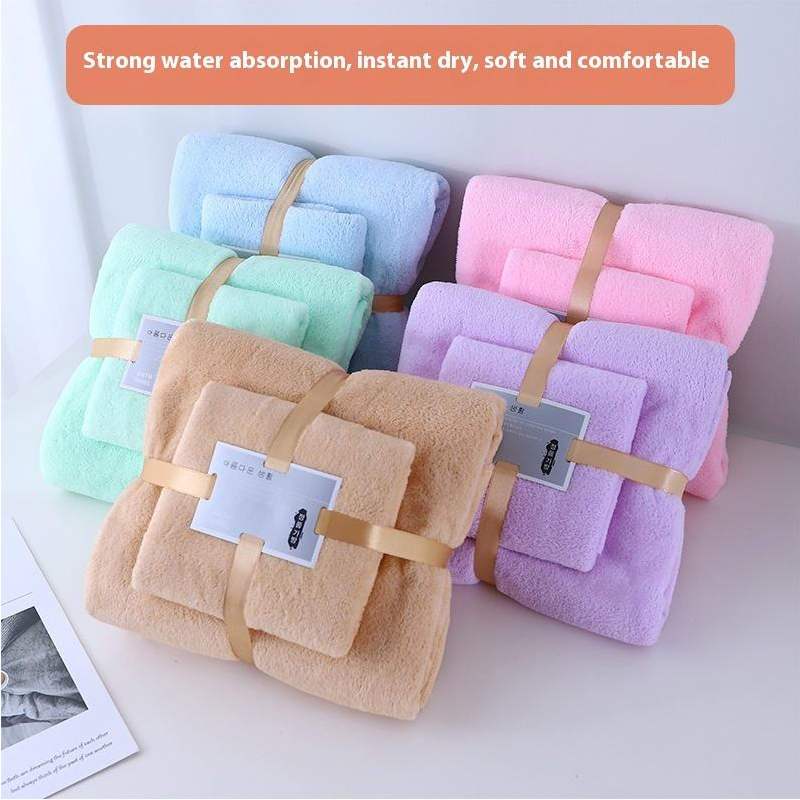 Nicedeal 2pcs Bath Towels Set Super Soft Highly Absorbent Quick-drying Coral Velvet Bath Hand Towel
