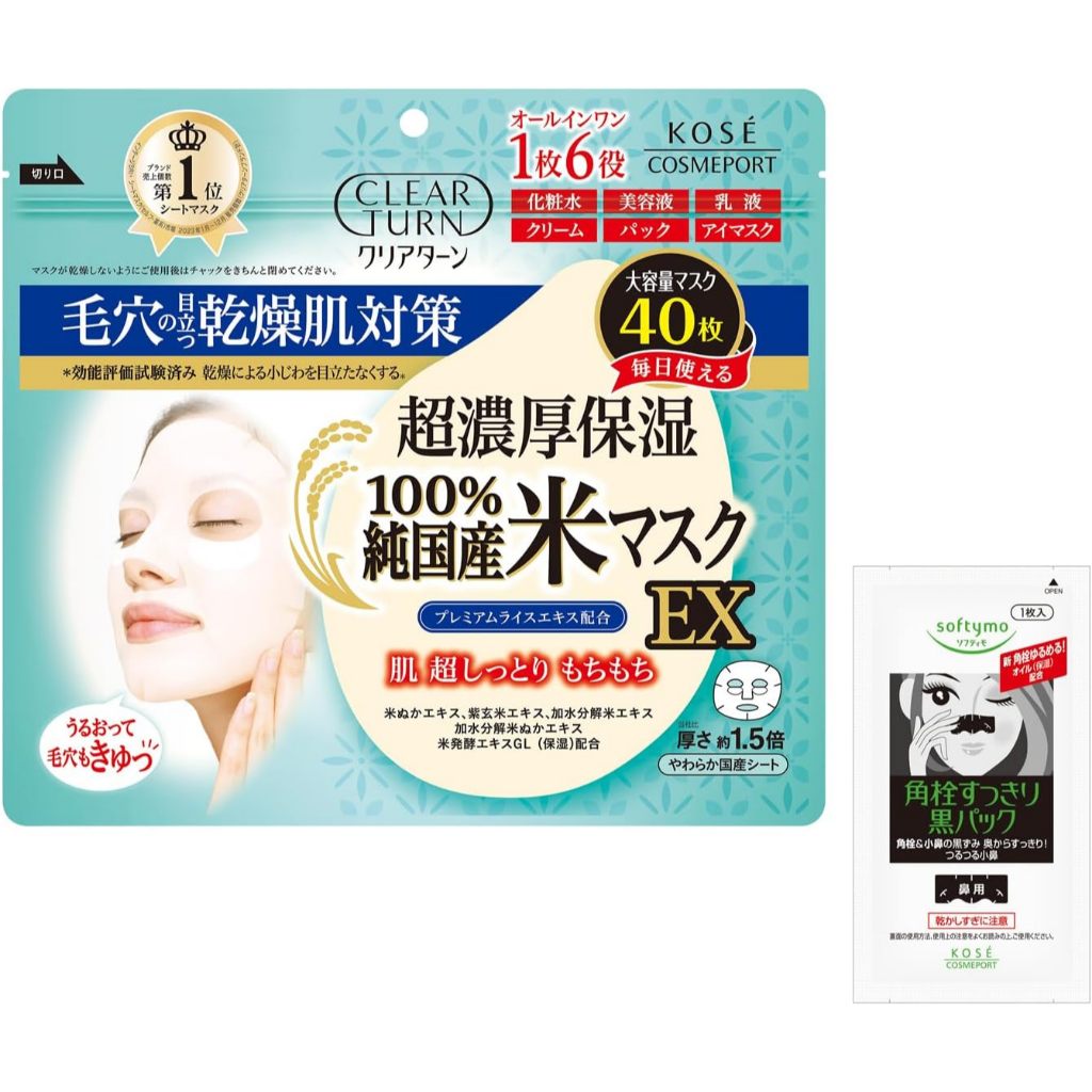 Direct from Japan Clear Turn Pure Japanese Rice Face Mask EX 40 sheets with sample Face Pack x 40 sheets