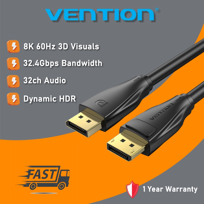Vention® DP 8K Cable 8K 60Hz 32.4Gbps Bandwidth 32-bit Audio High-Speed Display Port Cord Gaming or Professional Use