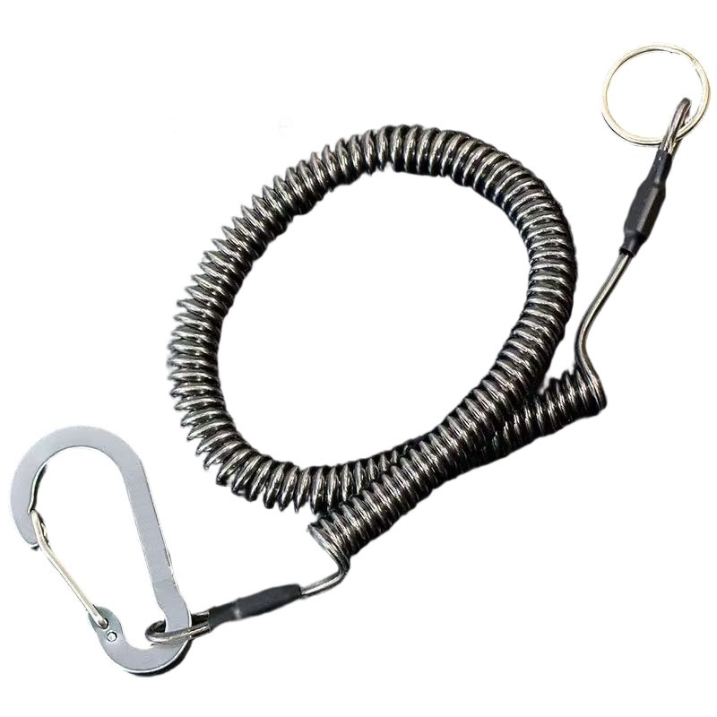 0.9m Length Steel Wire Lanyard With Carabiner Retractable Coiled Safety Rope Fishing Pliers Fish grip Elastic Anti-loss Lanyard