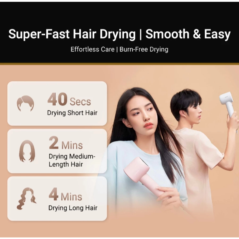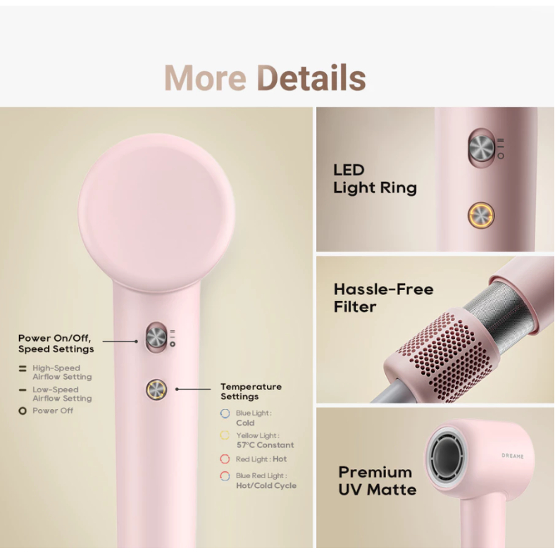 Dreame Hair Gleam Hair Dryer | High Speed 2 Mins Fast Drying | 330g Lightweight (Pink/Yellow)