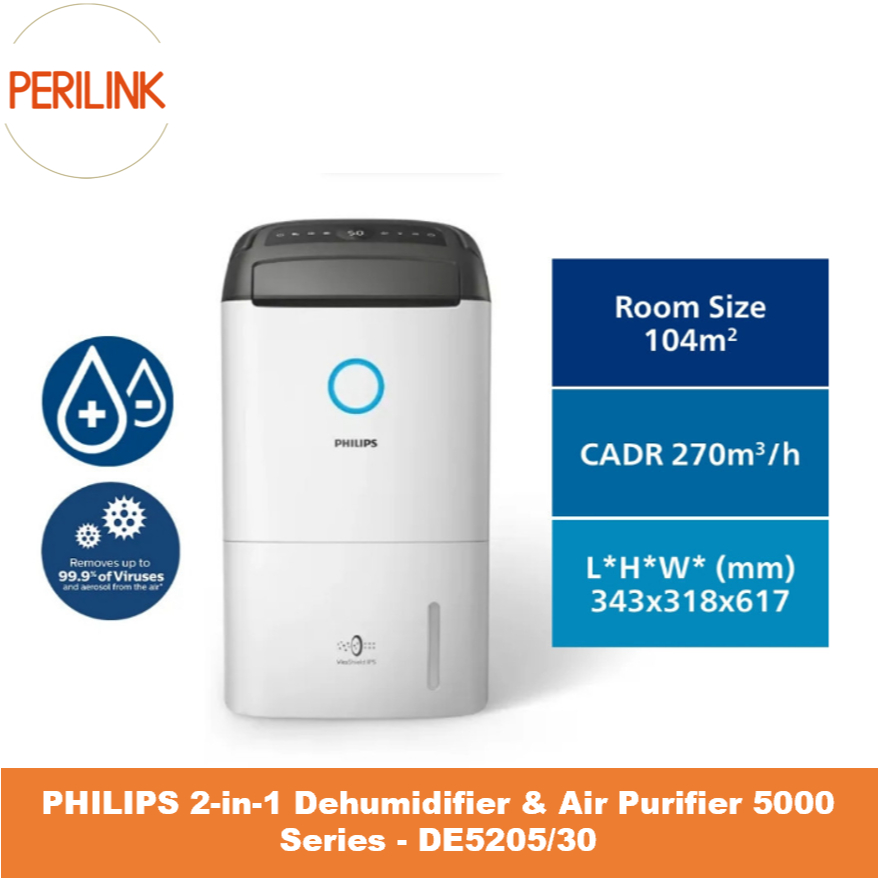 PHILIPS 2-in-1 Dehumidifier & Air Purifier 5000 Series - DE5205/30, Dehumidify up to 25L per day