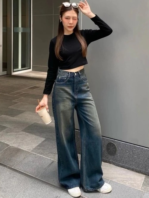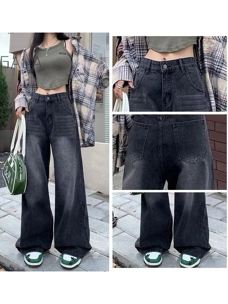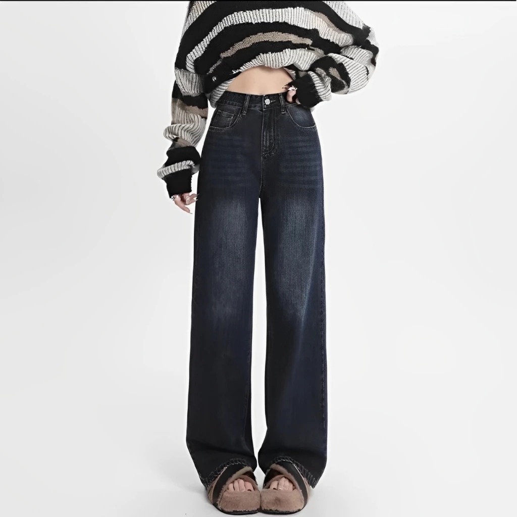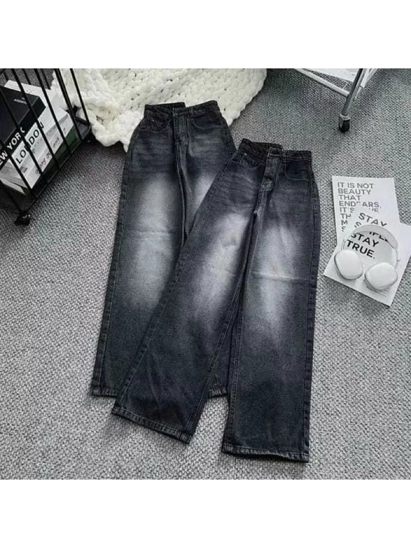 Korean Skena Style Premium Denim Loose Highwaist Jeans for Women Loose Baggy Pants Women's Gombrong Pants Retro Gray Jeans Skena Gren Retro Medium Beggi Black Retro ZUKHAILA JEANS