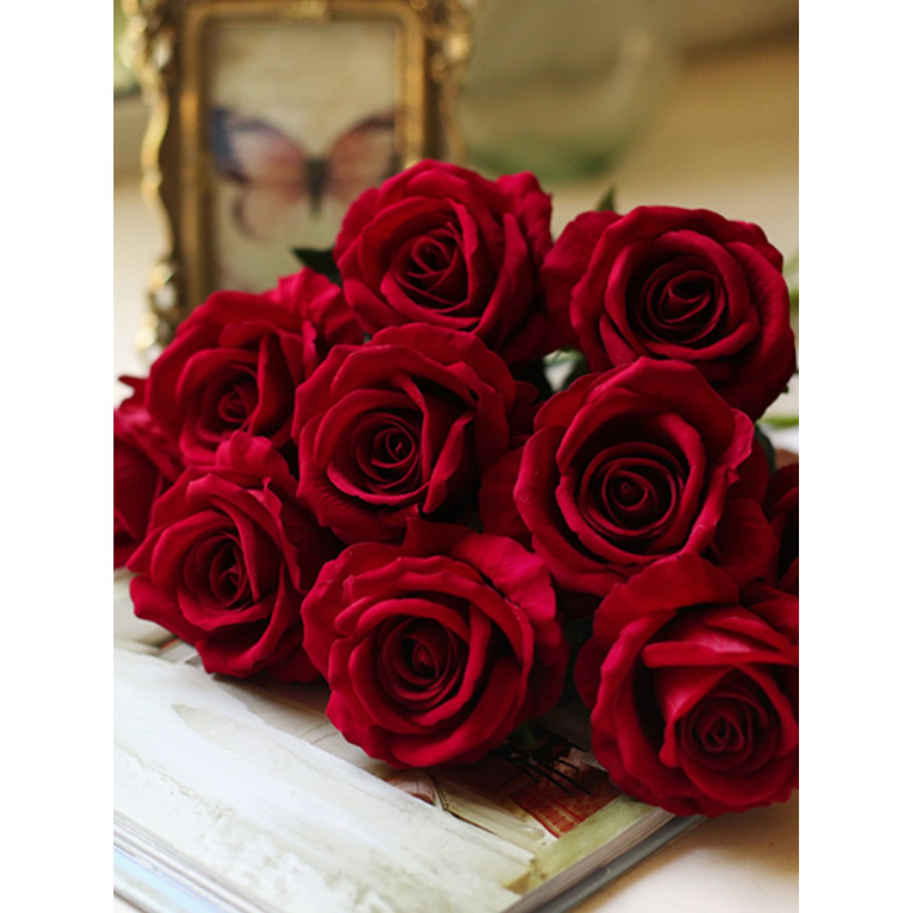 High Quality 10cm Flannel Artificial Rose Flowers Flannel Flowers Home Wedding Decoration Gift Mother's Day Gift