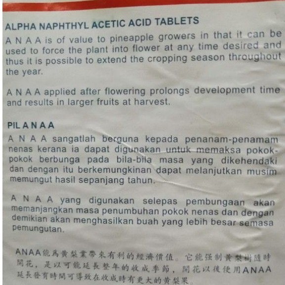 100 biji / 13.4 gram Pil PAKSA nanas nenas berbunga pineapple (repack) hormon ANAA ALPHA NAPHTHYL