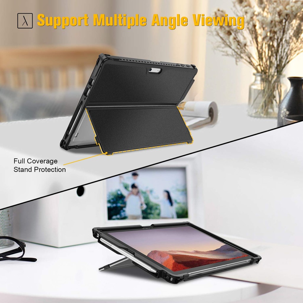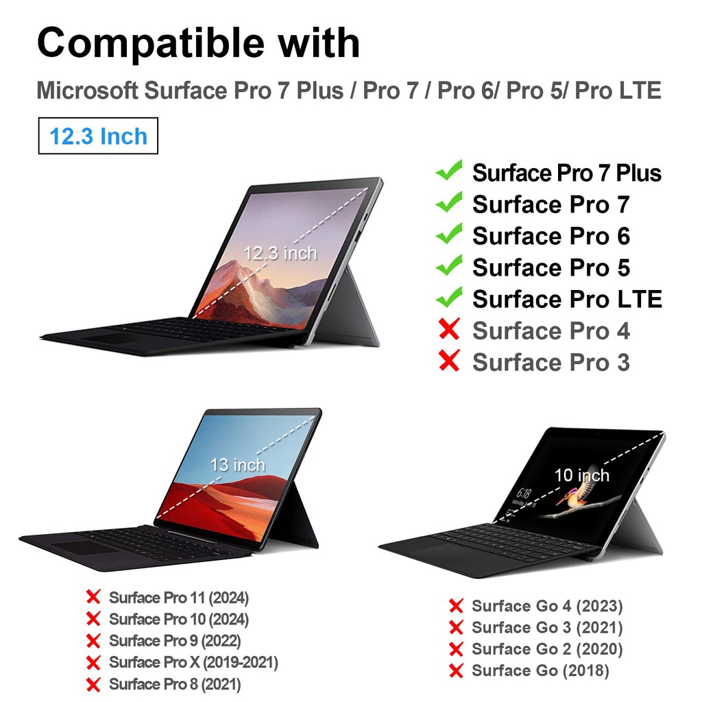 Fintie Protective Case with Keyboard Cover for Microsoft Surface Pro 7 Plus/7/6/5/LTE - Lightweight Slim TPU Design with Pen Holder and Kickstand (Clear)