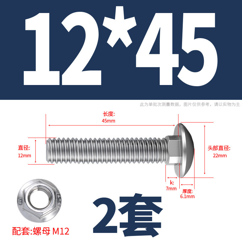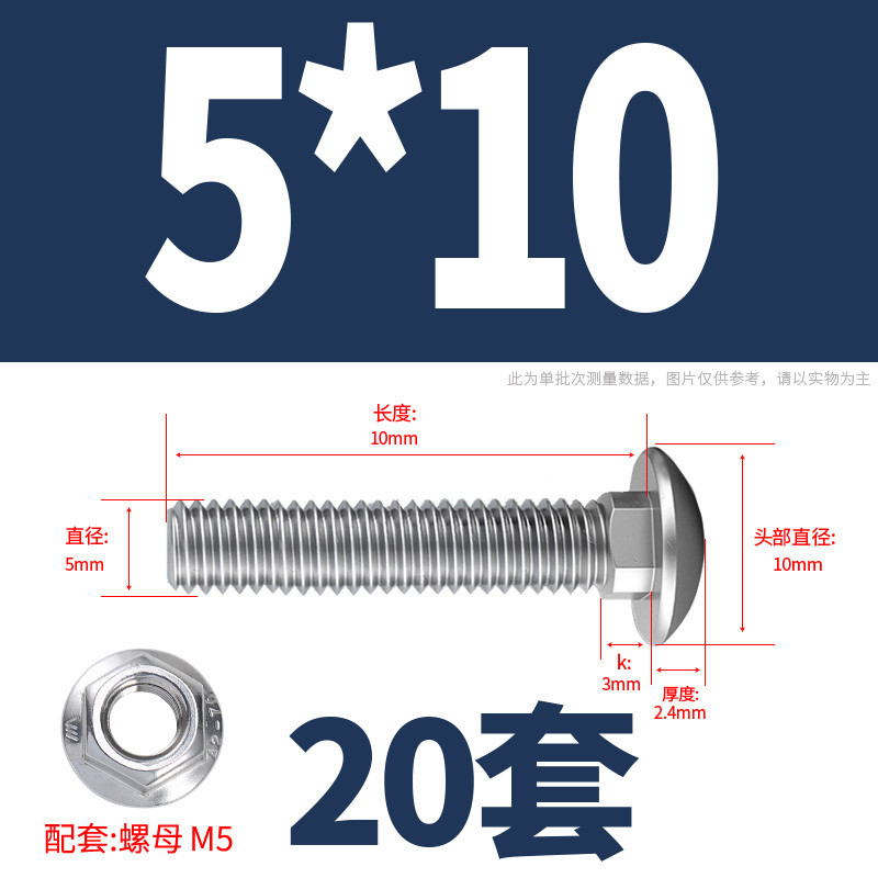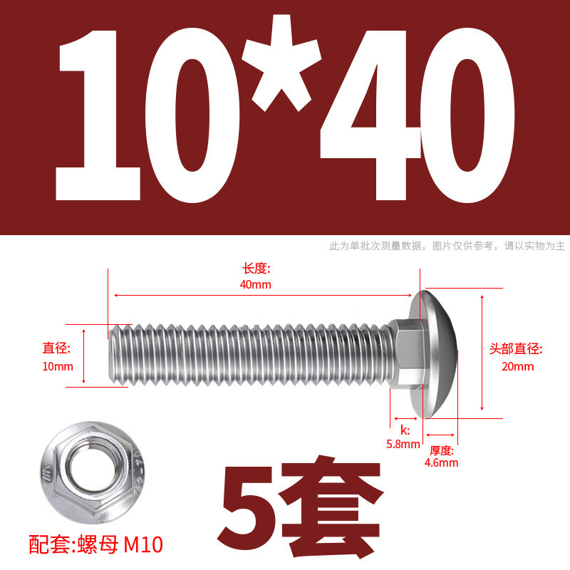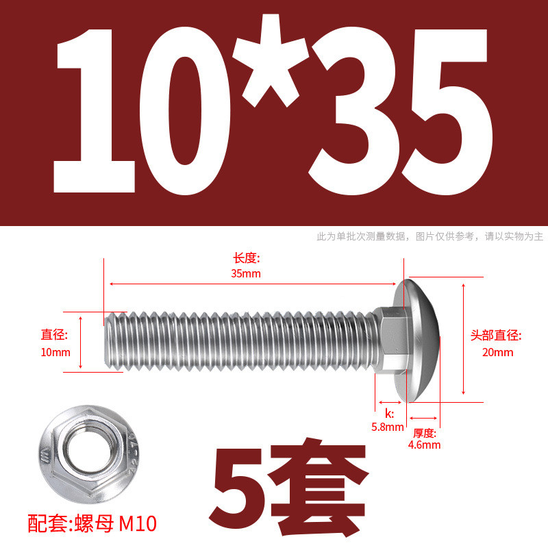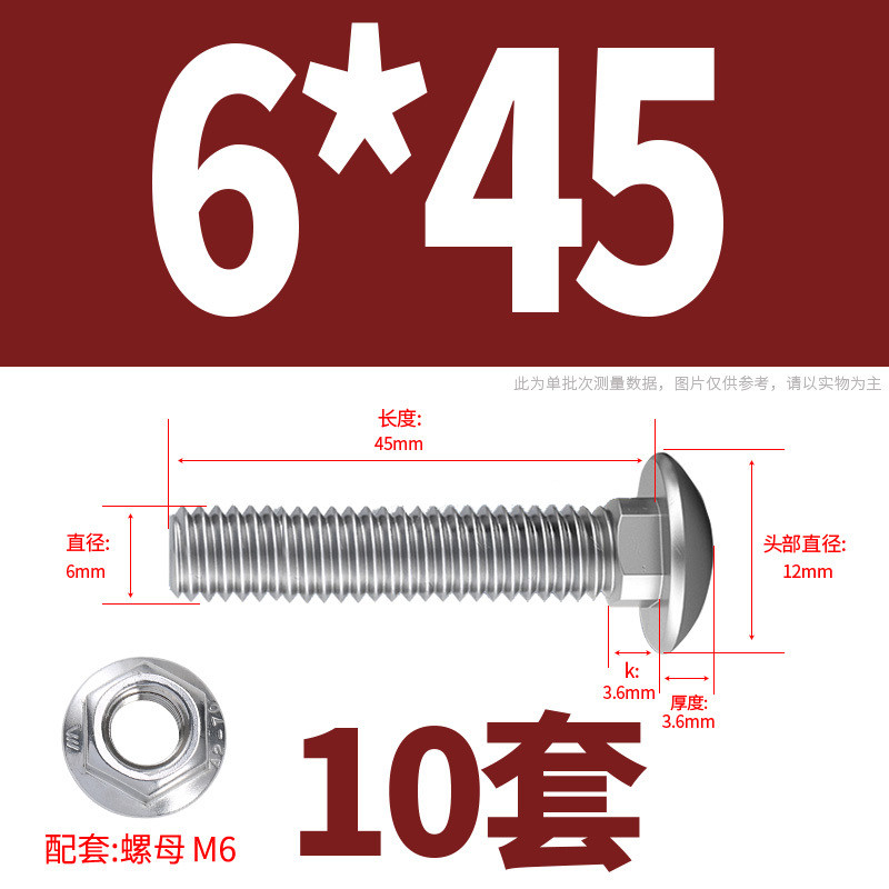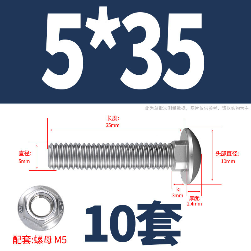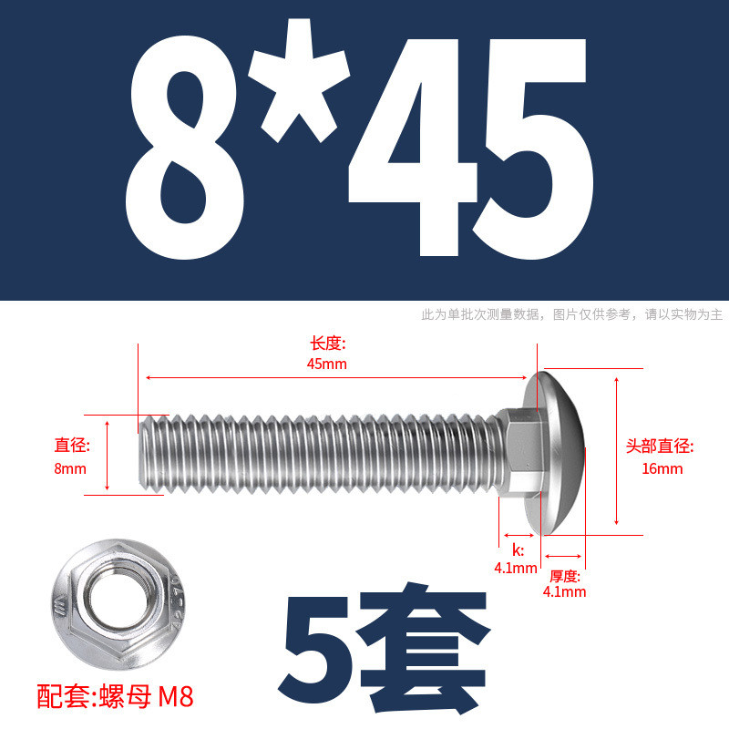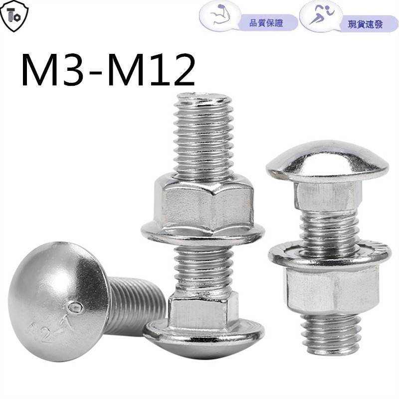 304 Stainless Steel Carriage Screw Nut Set M3-M12 Semicircle Head Square Neck Shelf Special Combination Bolt M4M5M6M8M10