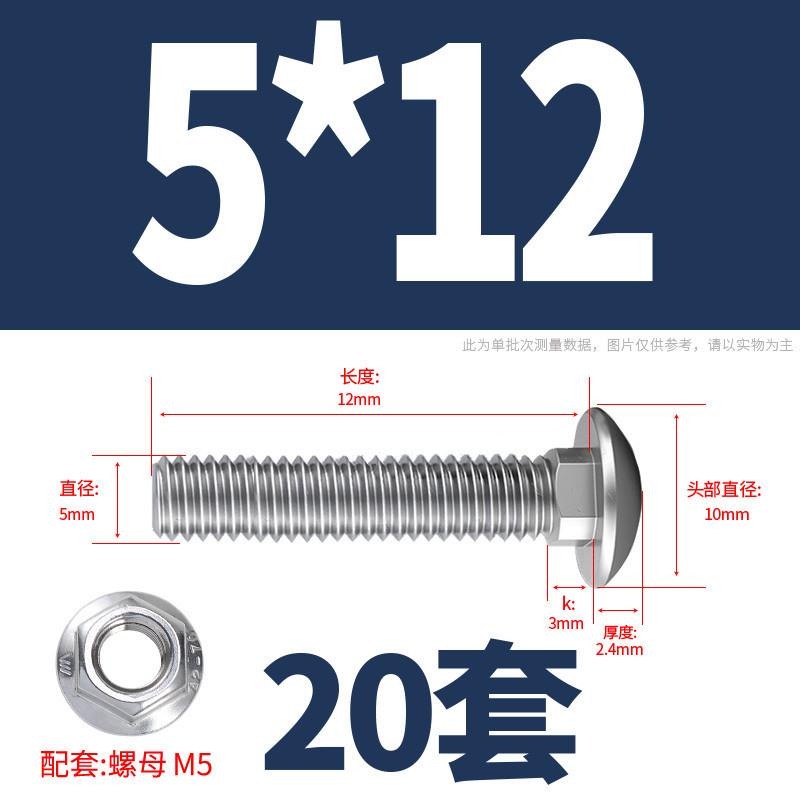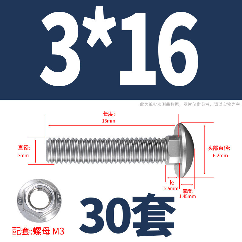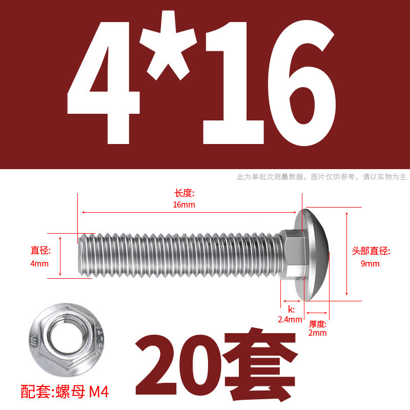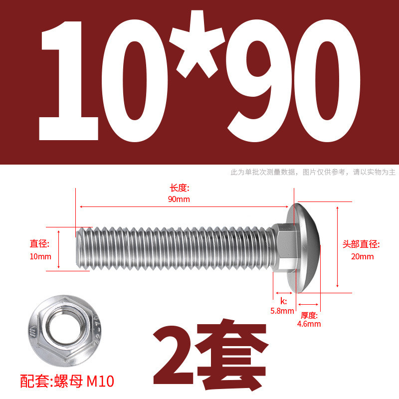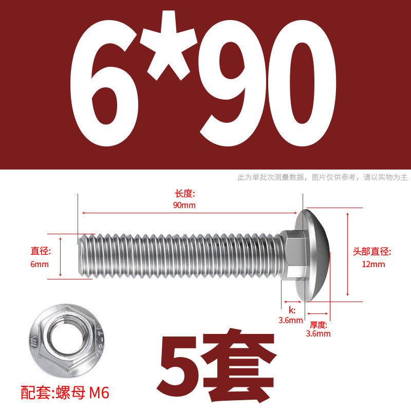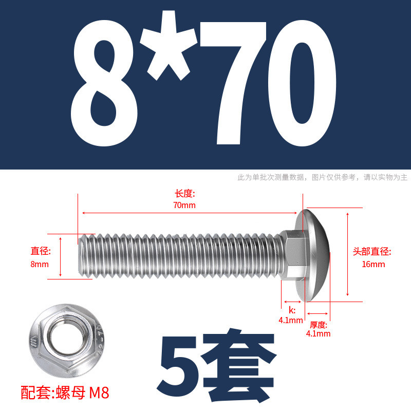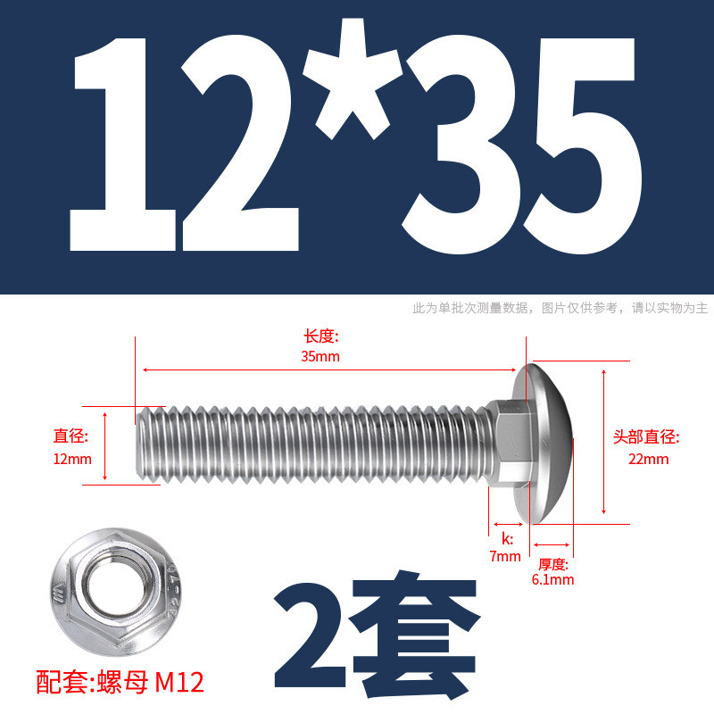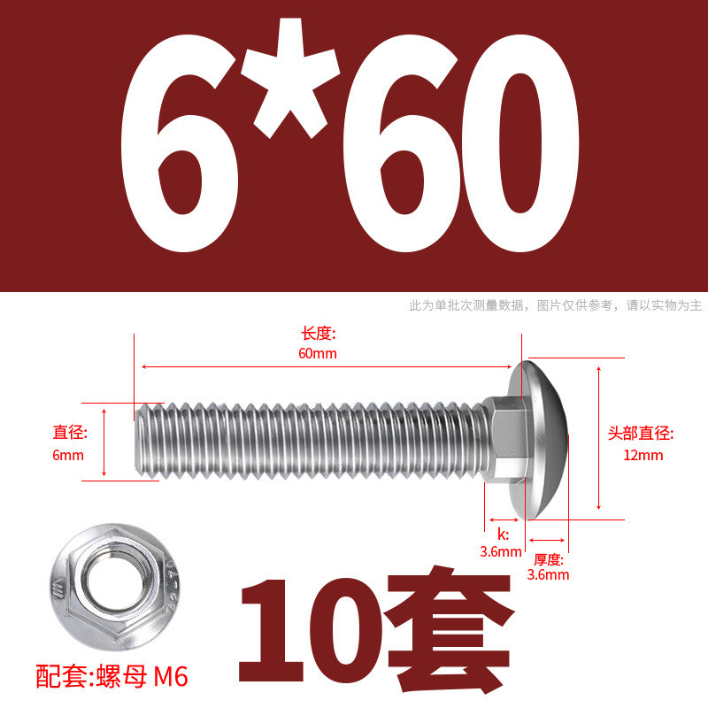 304 Stainless Steel Carriage Screw Nut Set M3-M12 Semicircle Head Square Neck Shelf Special Combination Bolt M4M5M6M8M10