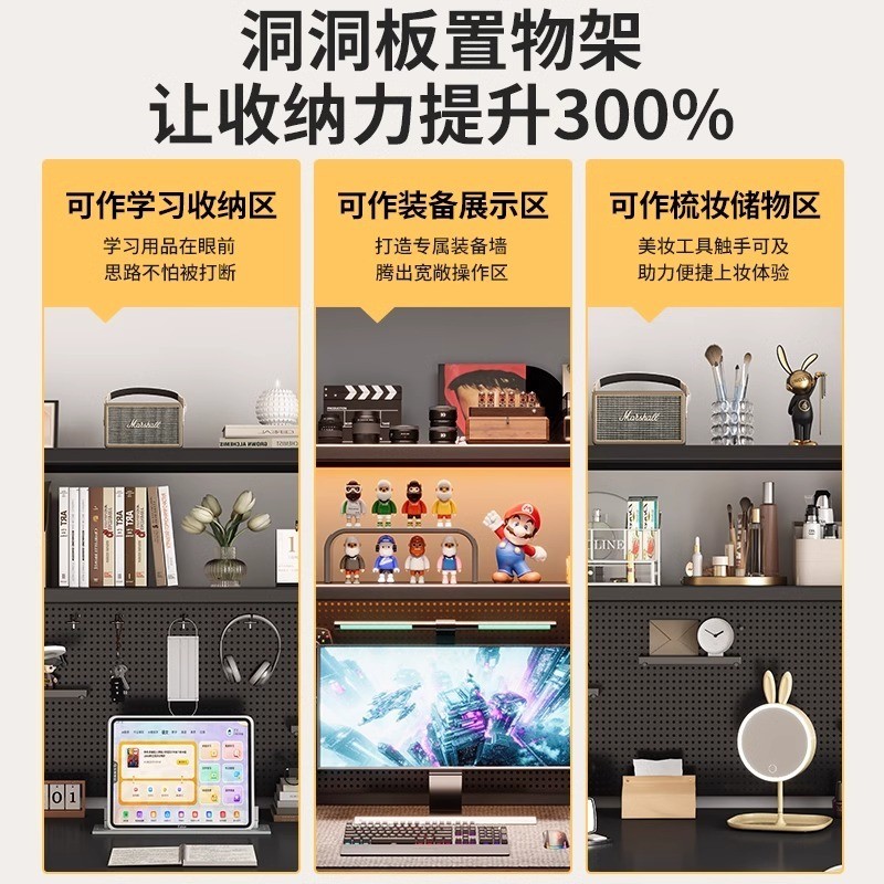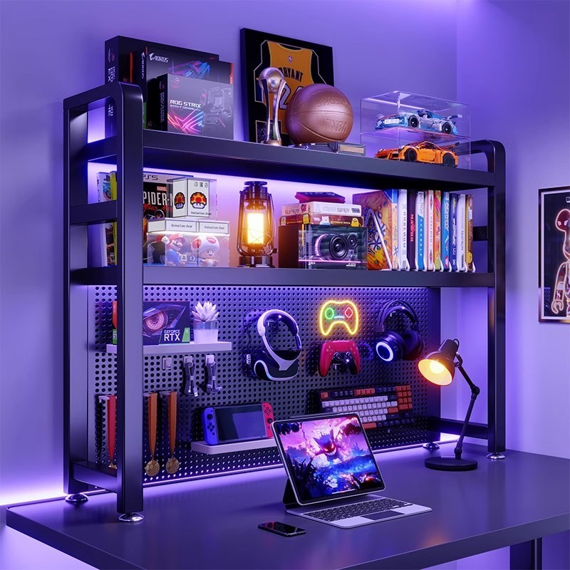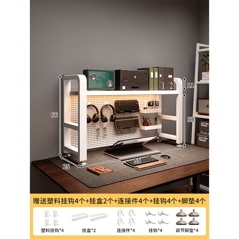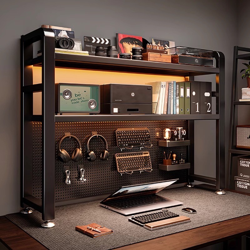 [in stock] Desktop Organizer Iron Art Pegboard Bookshelf Bedroom Computer Desk Display Rack Home Study Desk Storage Shelf