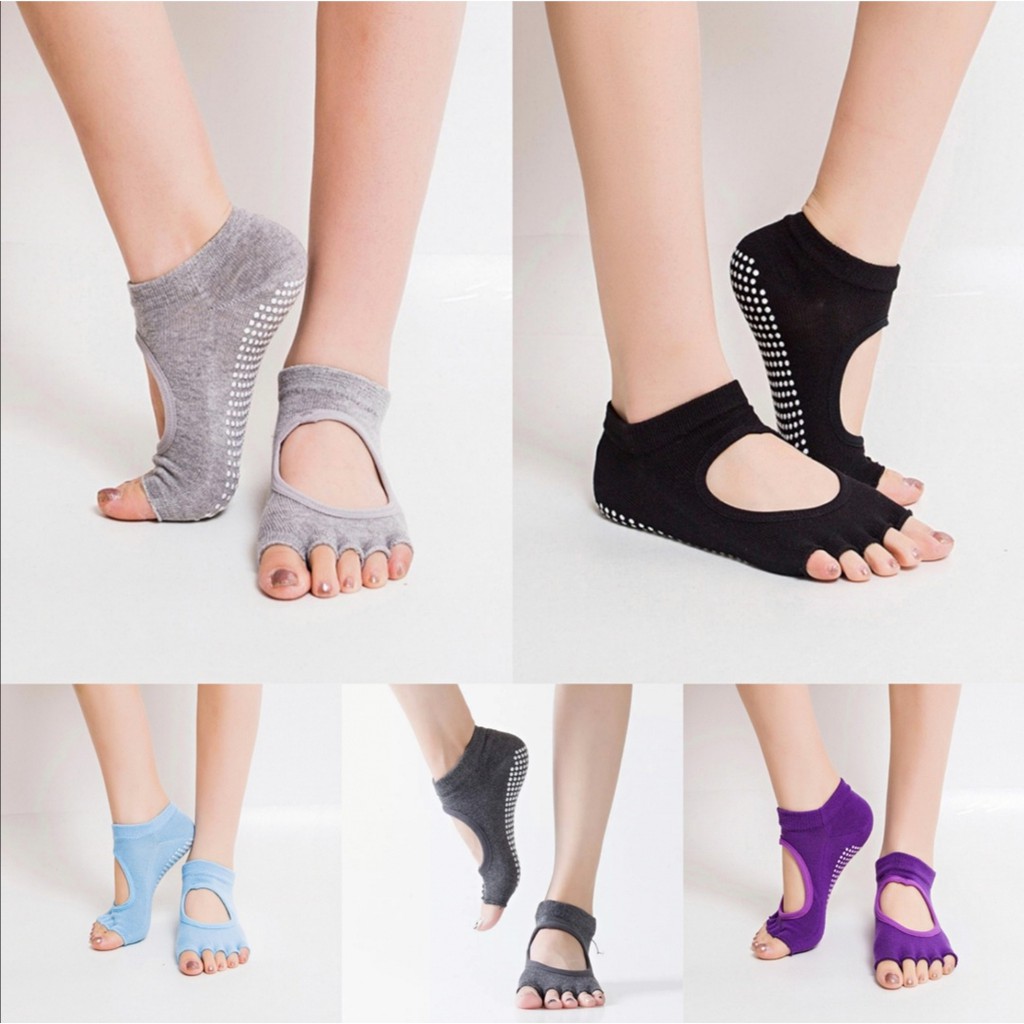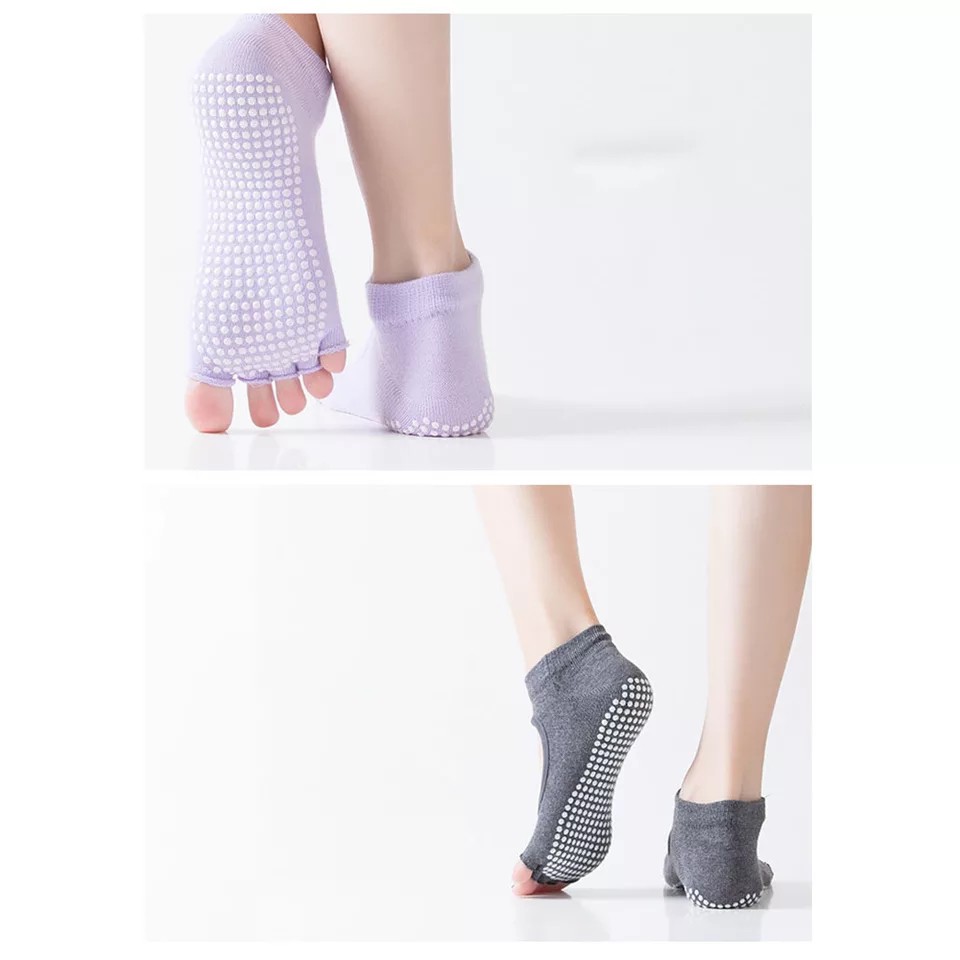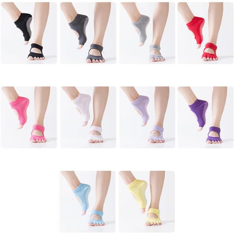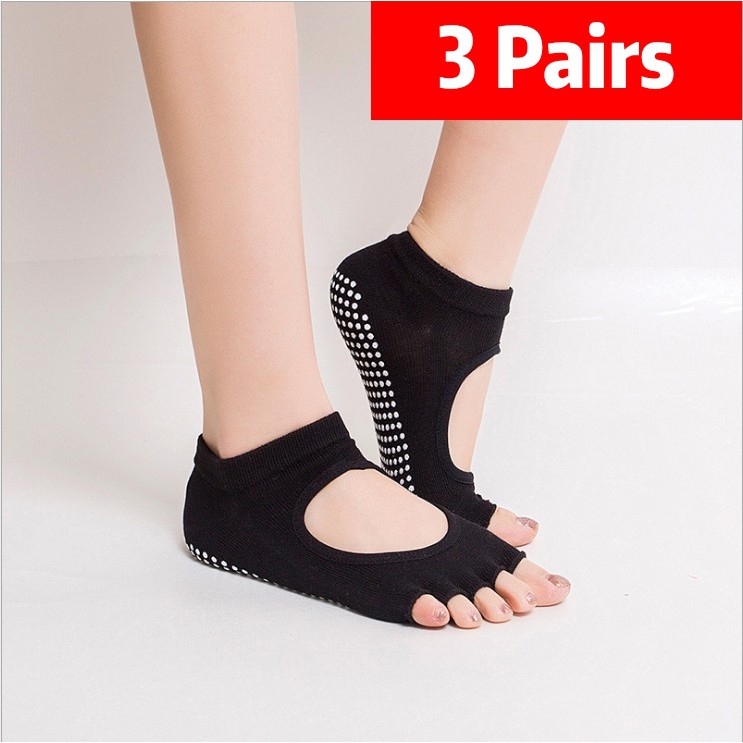 (SG Seller) 2 Pairs Yoga Socks Cotton Anti Slip Lady Gym Fitness Sports Pilates Dance Socks five-finger Socks WZ125