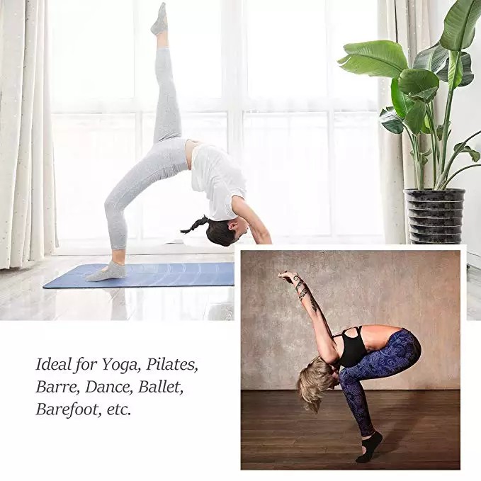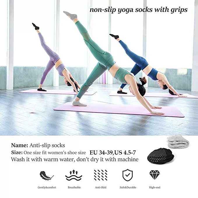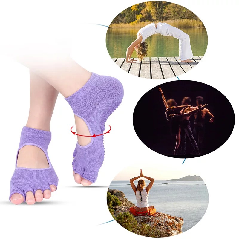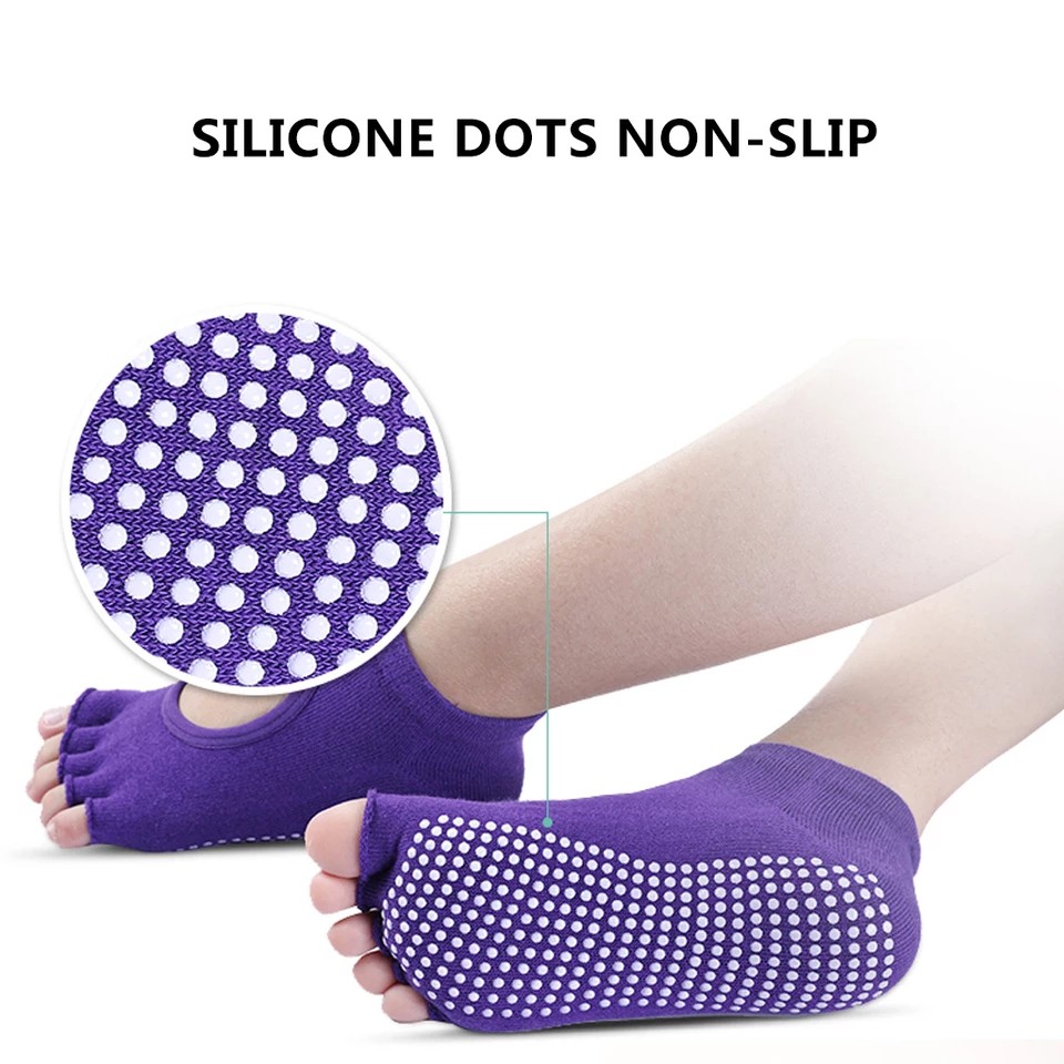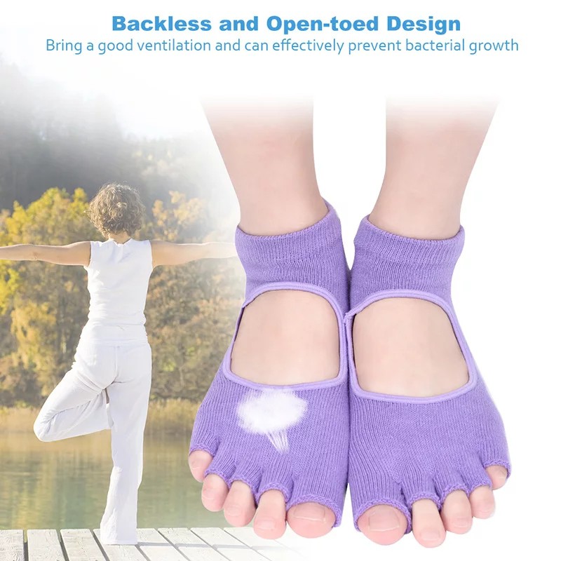 (SG Seller) 2 Pairs Yoga Socks Cotton Anti Slip Lady Gym Fitness Sports Pilates Dance Socks five-finger Socks WZ125