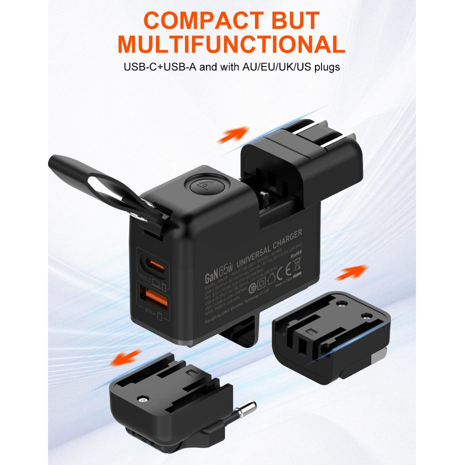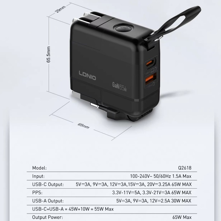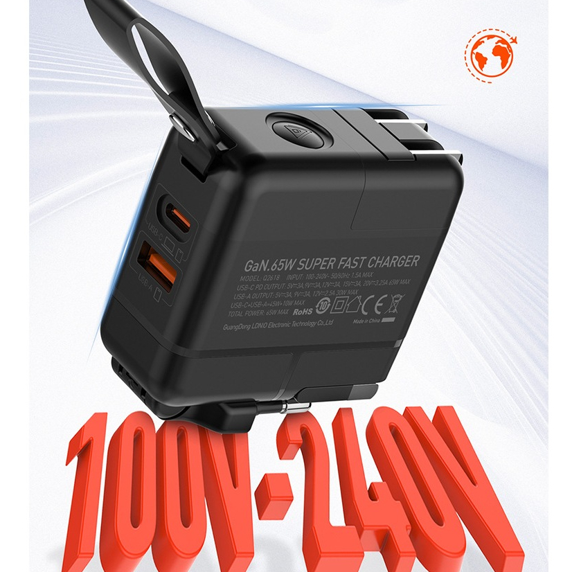 LDNIO Universal Travel Charger 65W GaN Fast Charger Replaceable Plug UK/EU/US/AU Global Charging
