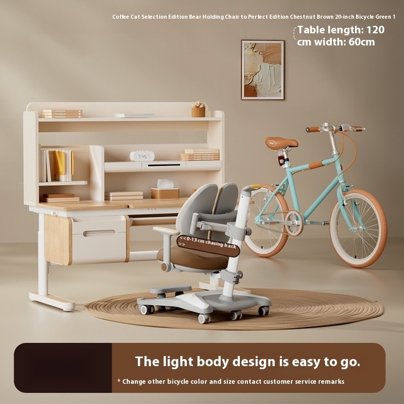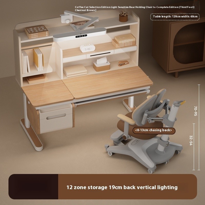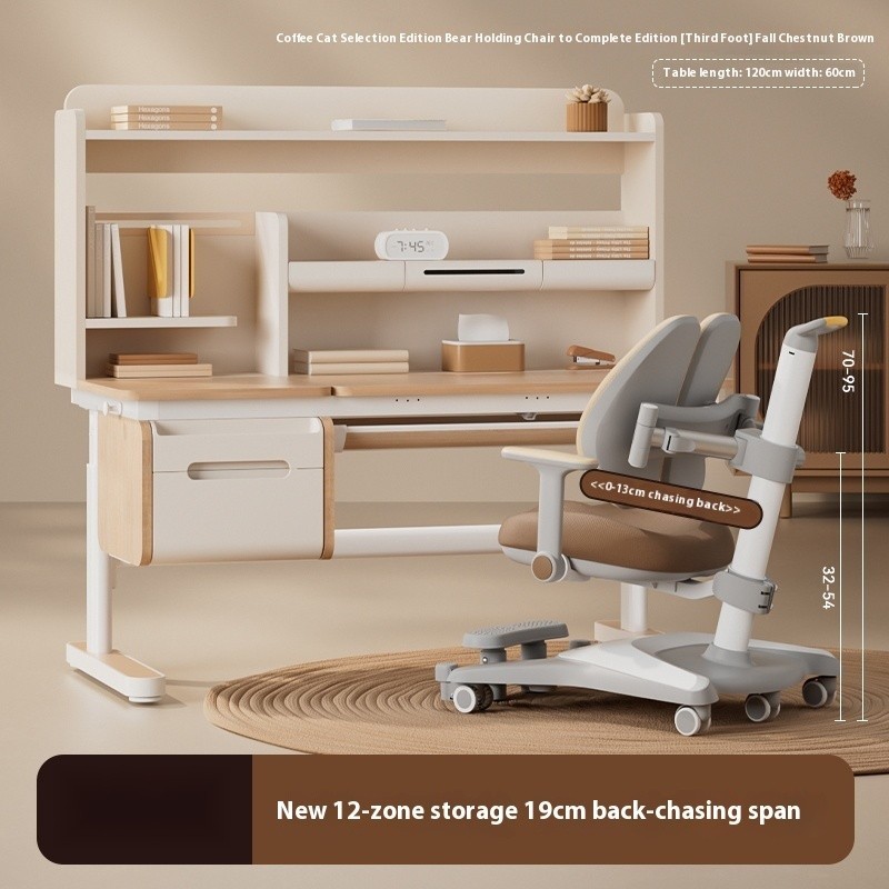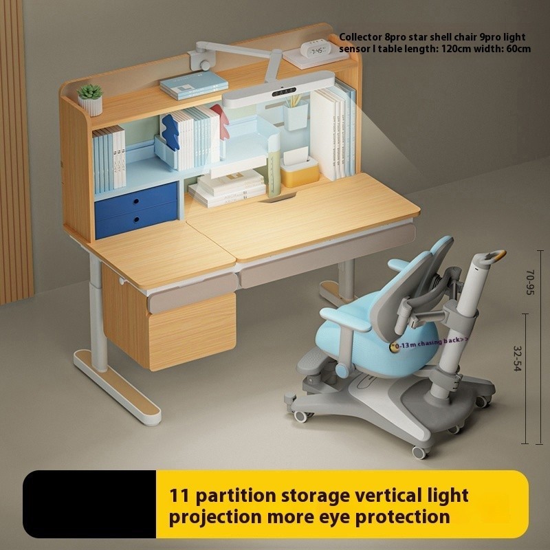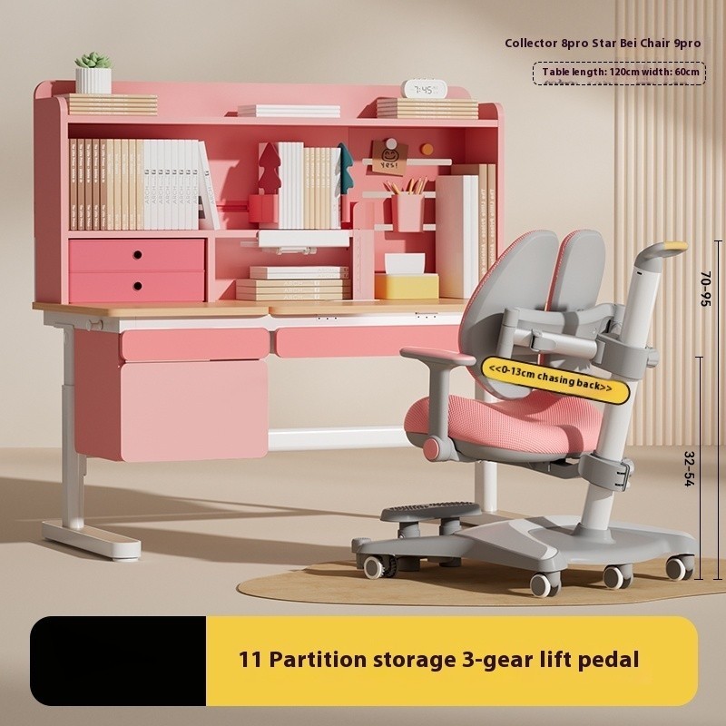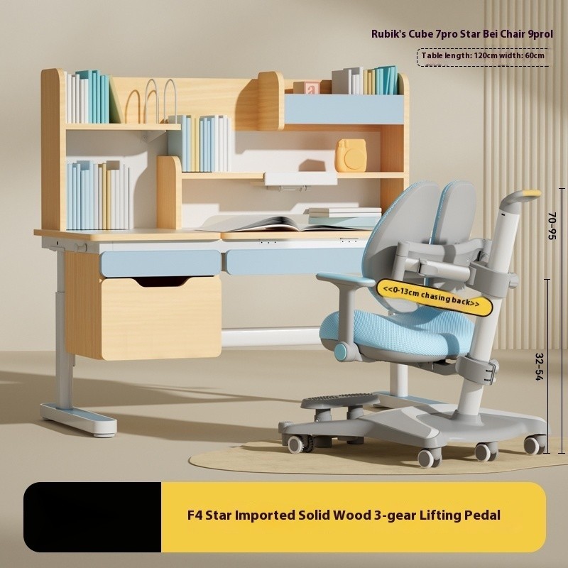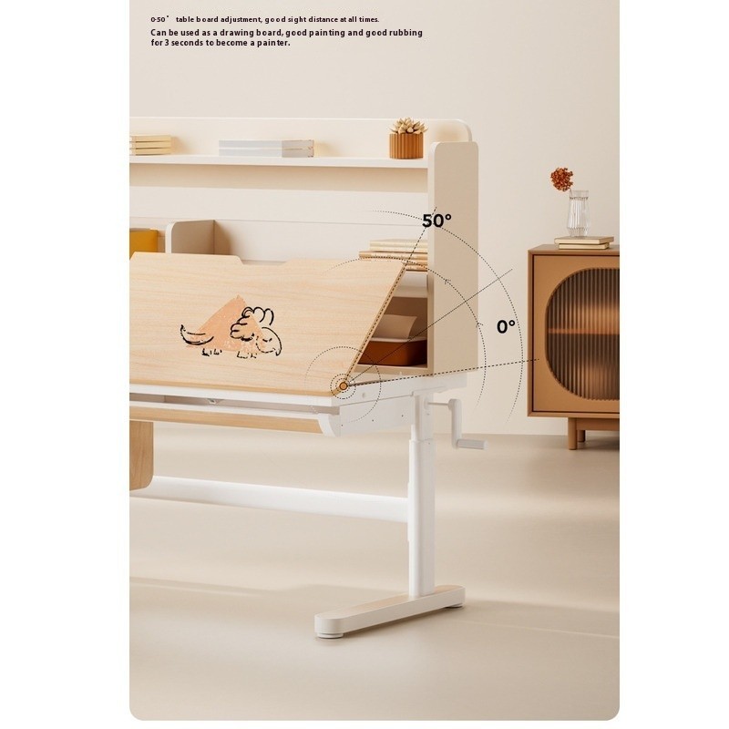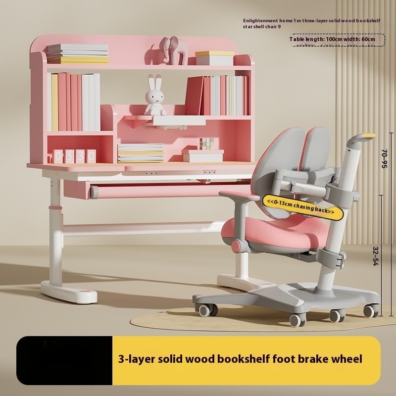 meineee1.sg Children's Study Desk Lifting Study Table Solid Wood Writing Desk Household Kids Table and Chair Study Table with Shelves