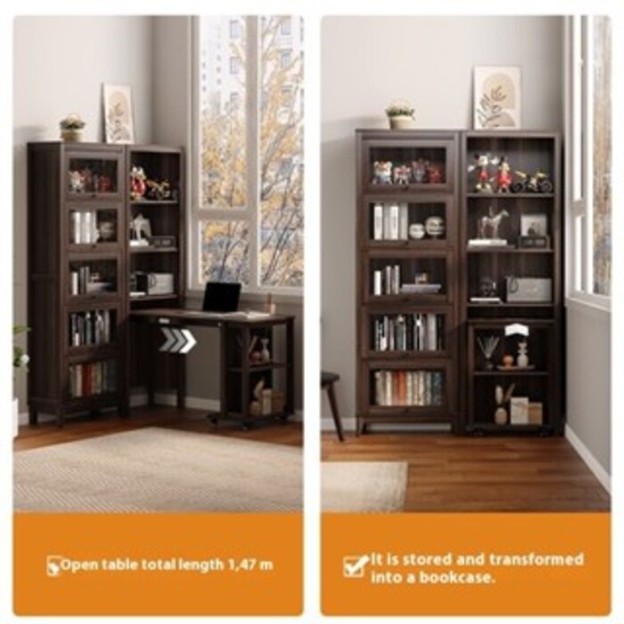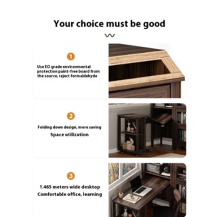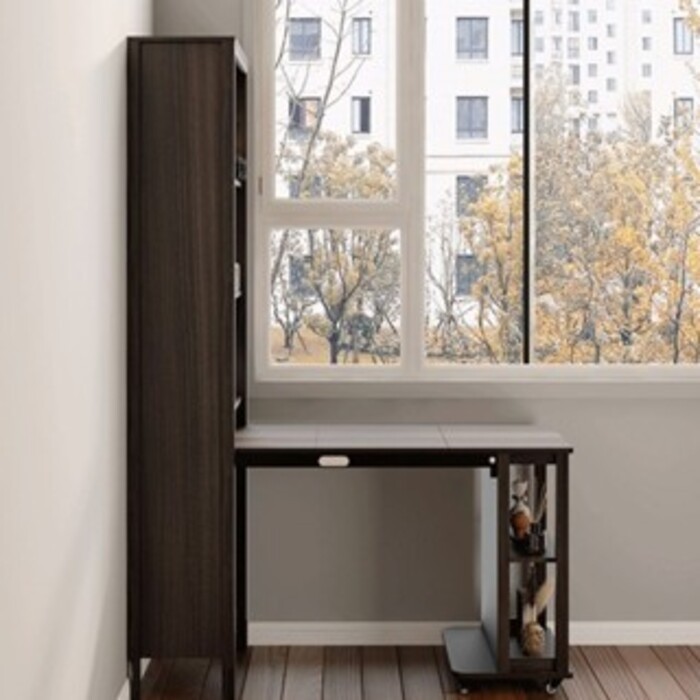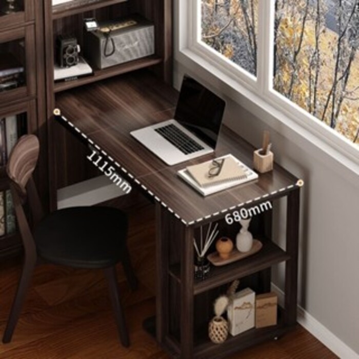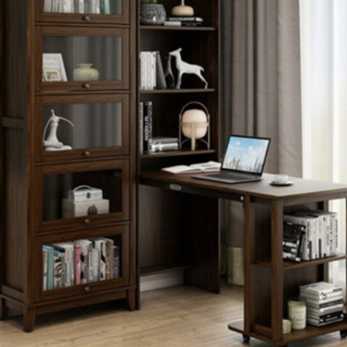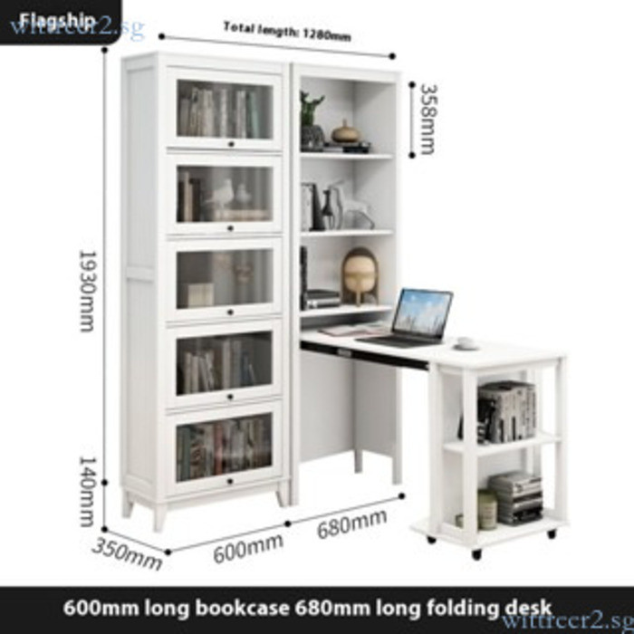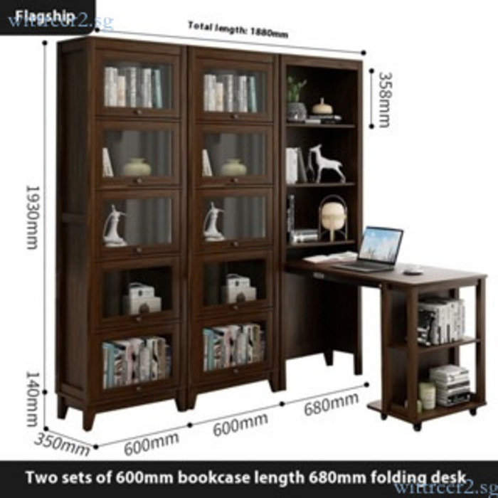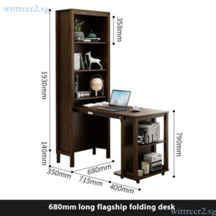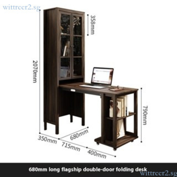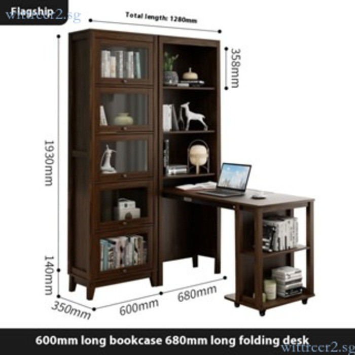 Folding OfficeTable Cabinet Study Table With Boohelf Solid Wood Writing Desk