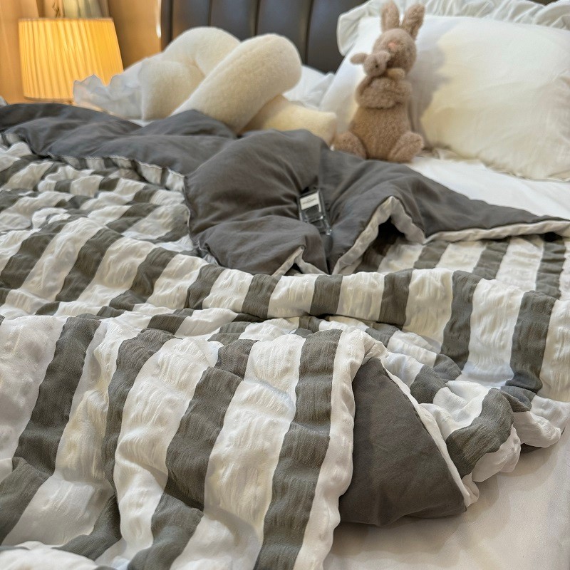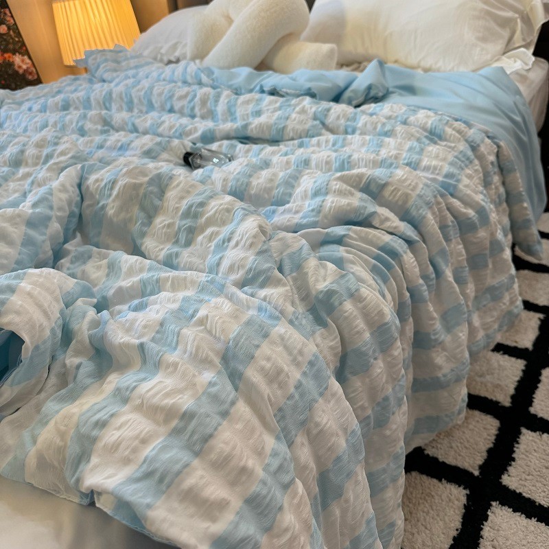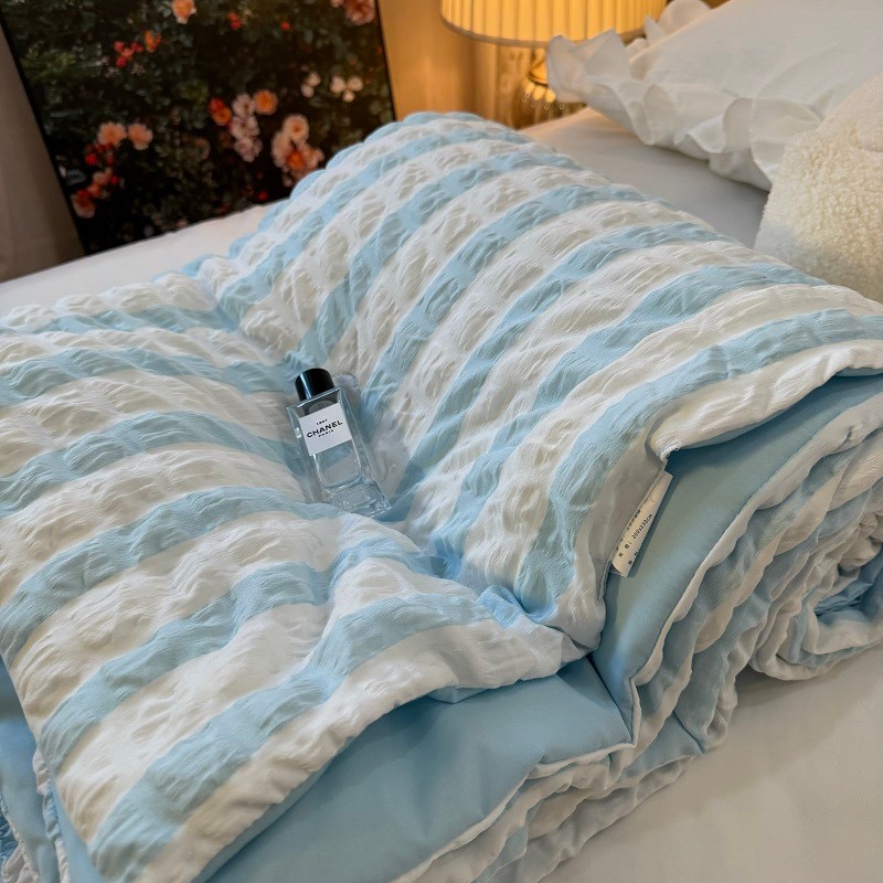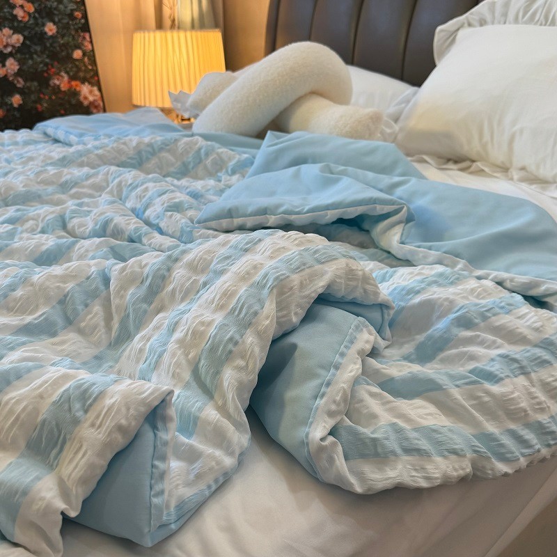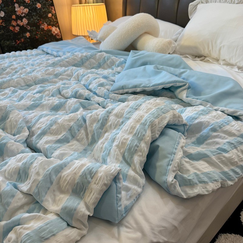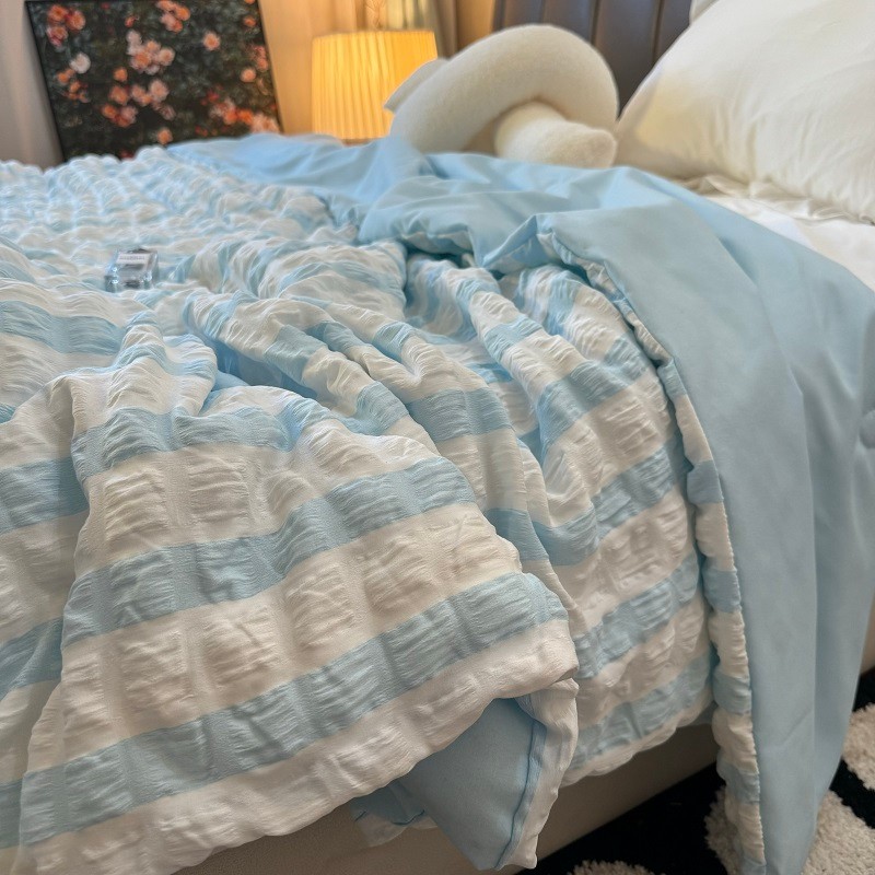 [48H Shipping] Japanese Style Fresh Cream Blue and White Striped Bubble Gauze Summer Quilt Air Conditioning Quilt Machine Washable Cool Thin Quilt Core