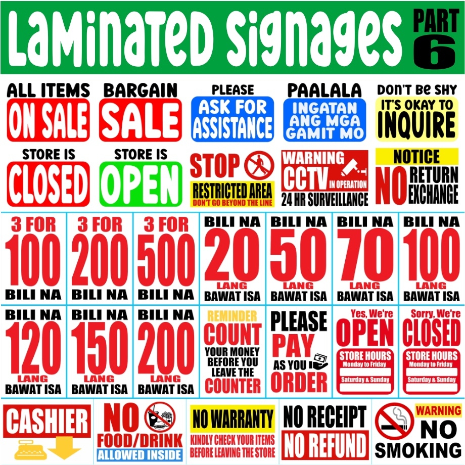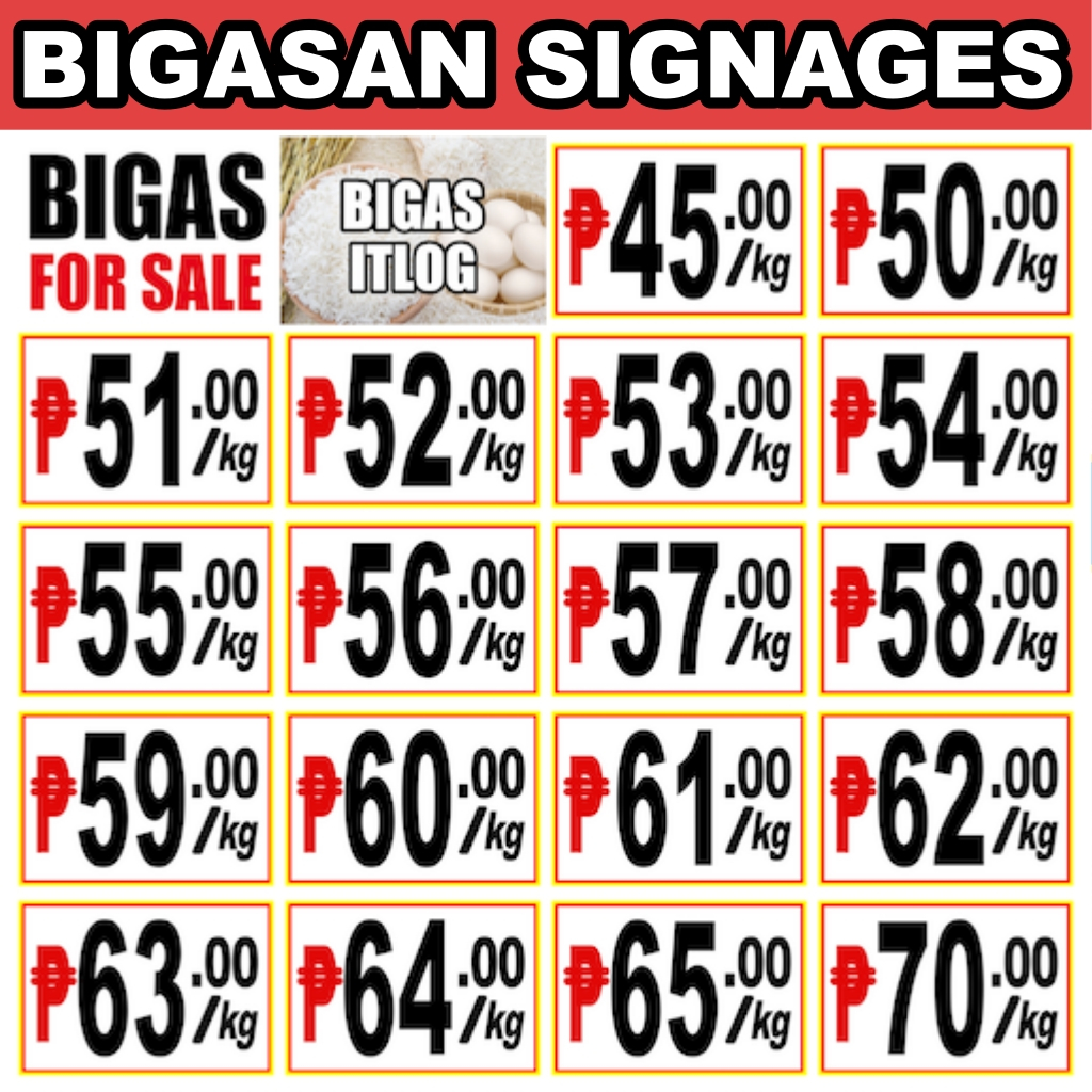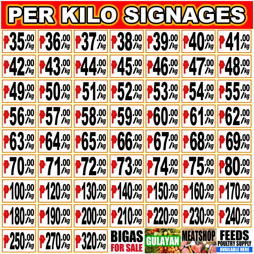 PER KILO BIGASAN Meat Shop Gulayan Prutasan Pet Food Poultry Feed SIGNAGES Laminated Price Signage