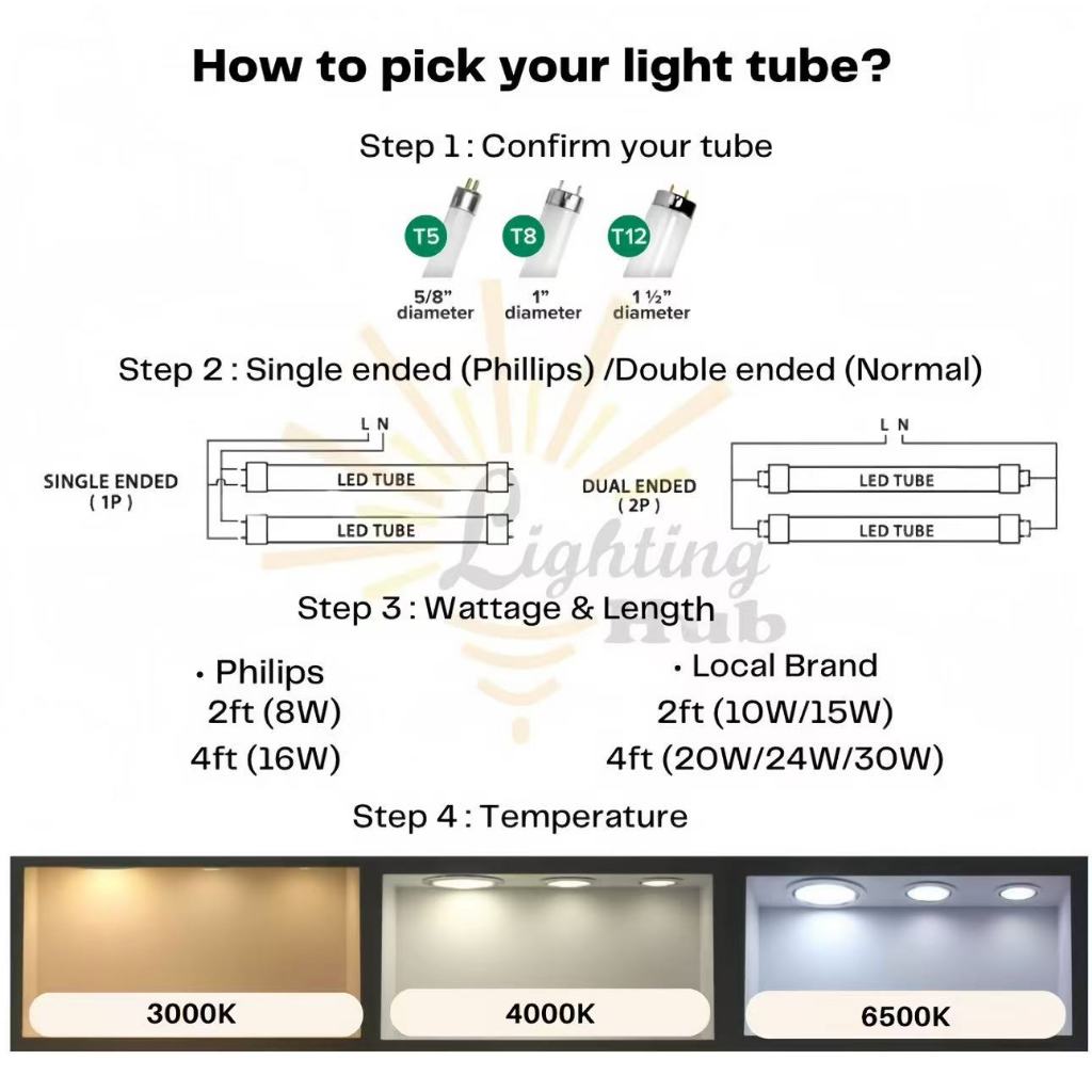 【LIGHTING HUB】 T8 LED TUBE (double-ended connection) 10W / 15W / 20W / 24W / 30W (2ft 4ft)