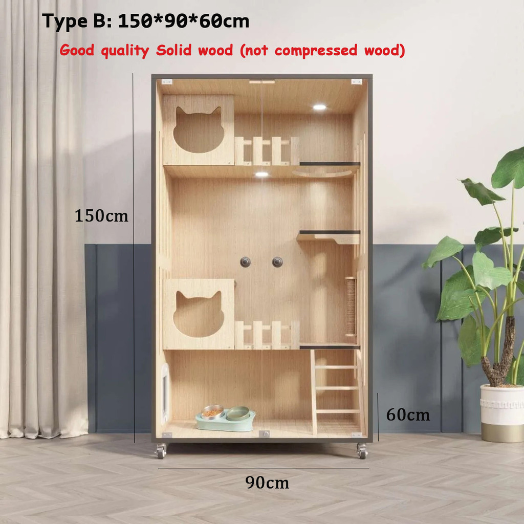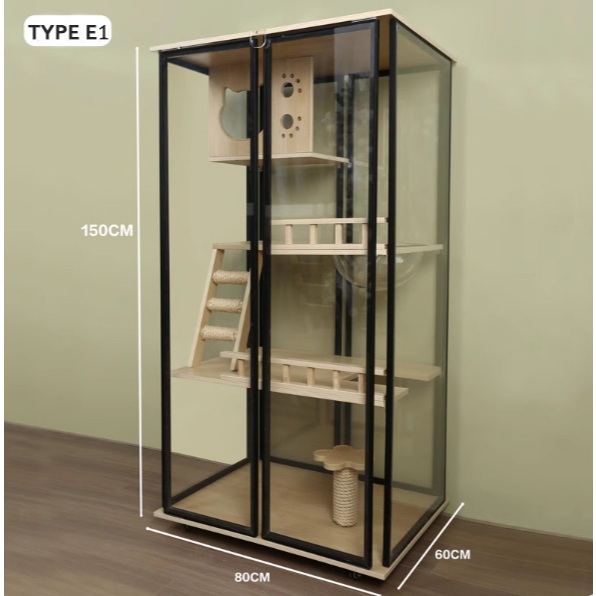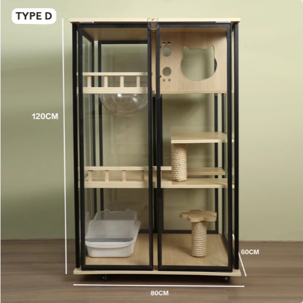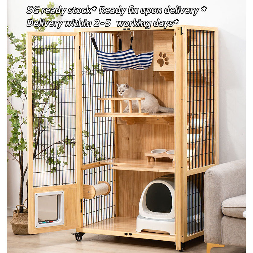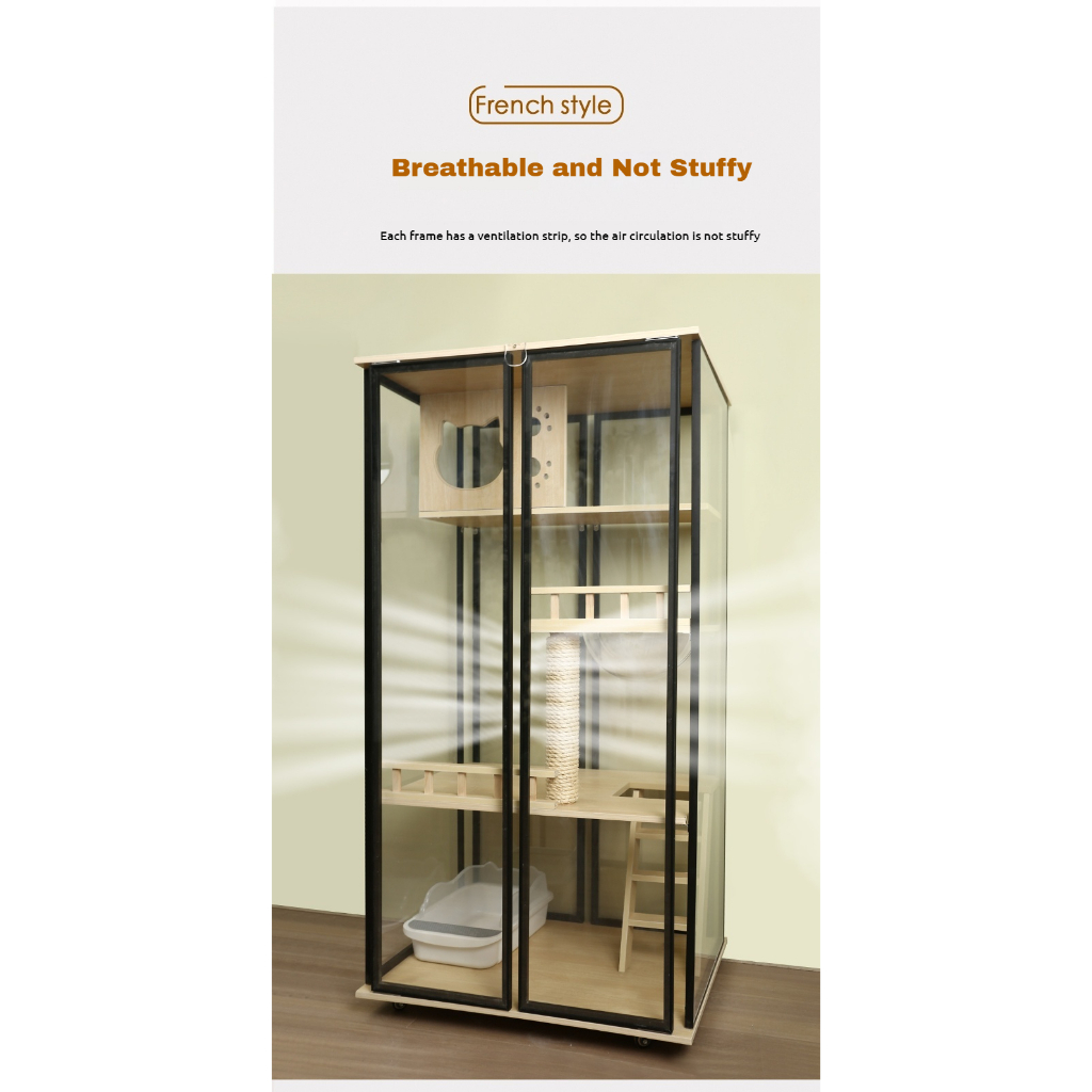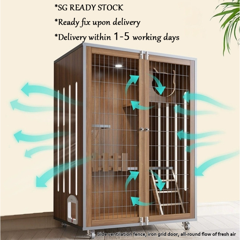 【SG SELLER】【FREE INSTALLATION】Wood Cat Condo Cage Villa Cabinet Glass Door Waterproof Large Space Cat House