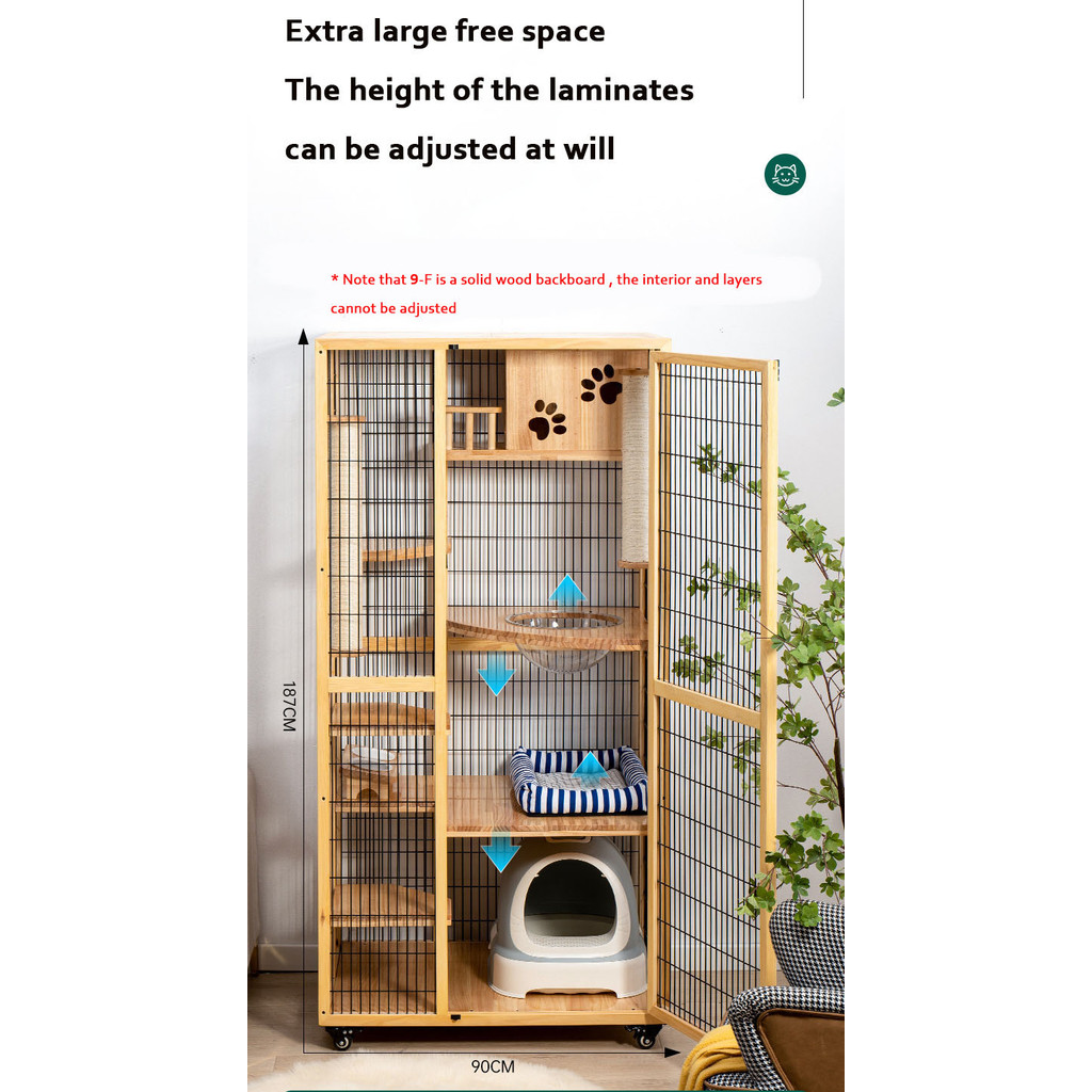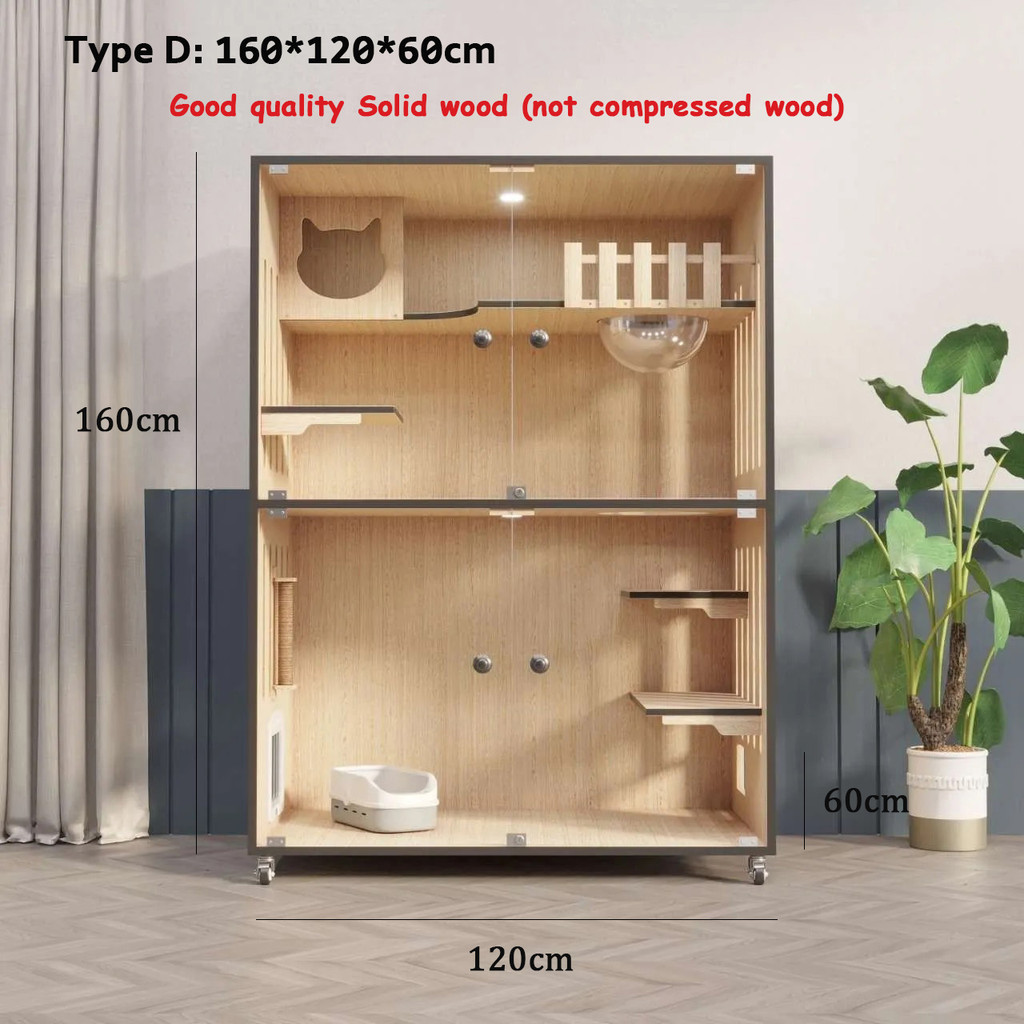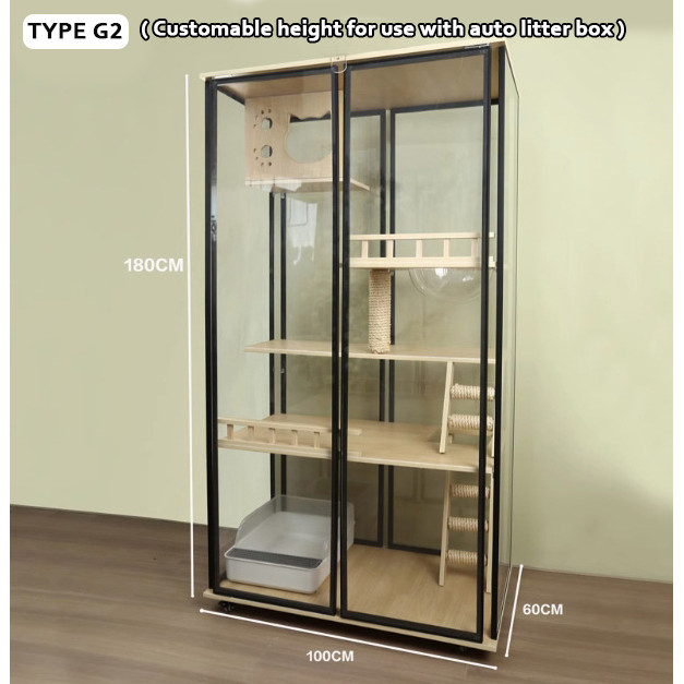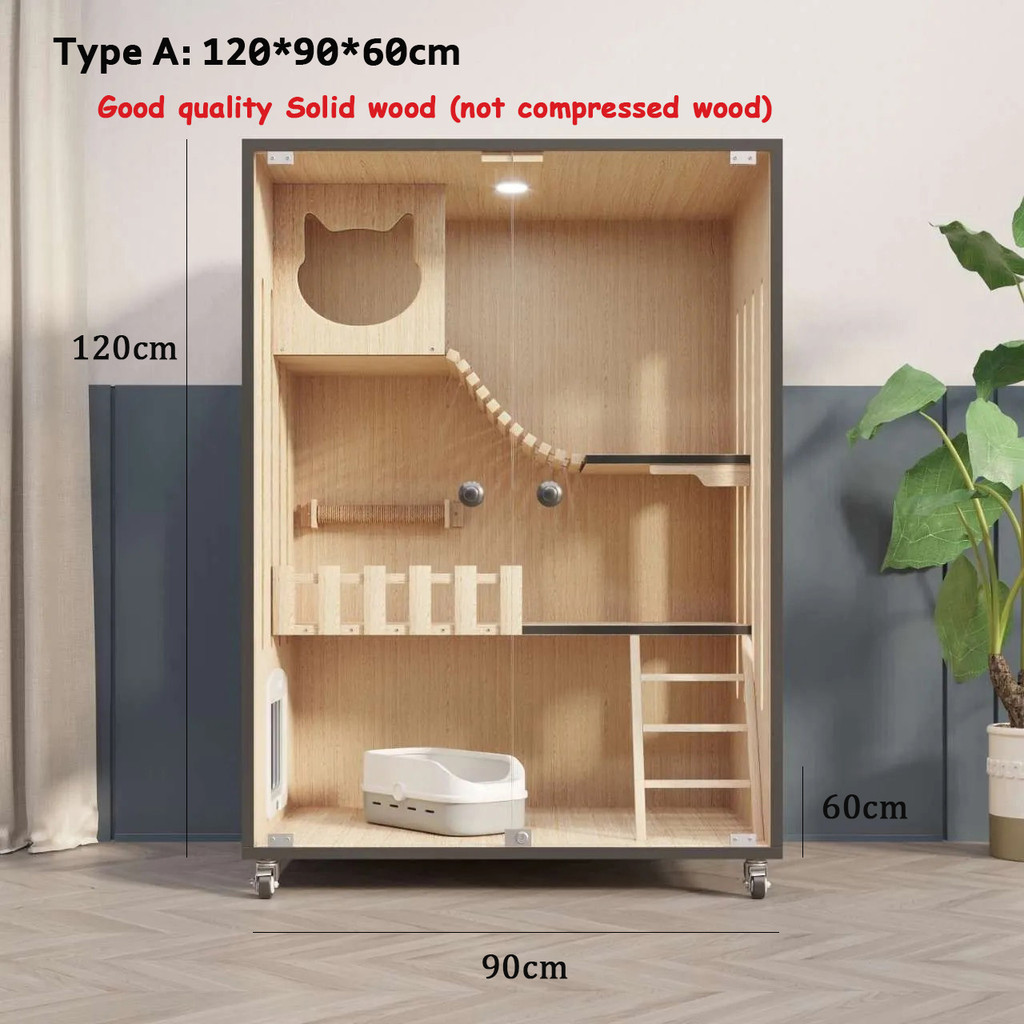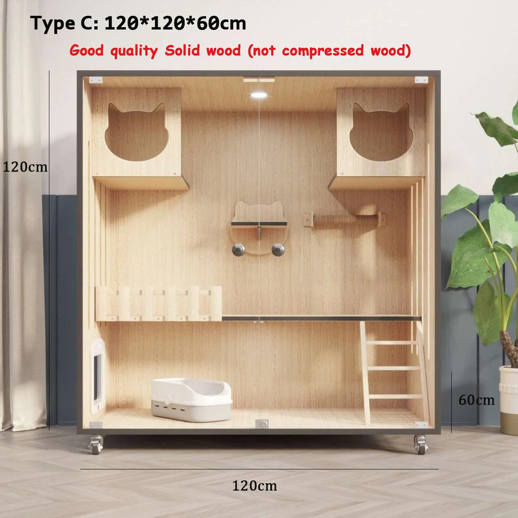 【SG SELLER】【FREE INSTALLATION】Wood Cat Condo Cage Villa Cabinet Glass Door Waterproof Large Space Cat House