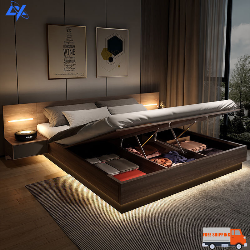 LZ Tatami Wooden Solid Wood Storage Bed With Bedside Table Super Single/queen/king Size Bed Frame