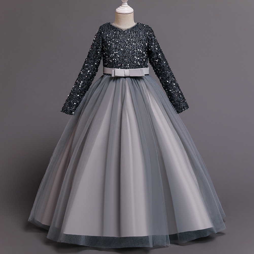 Princess Velvet Long Sleeve Bridesmaid Dress For Girl Children Costume Gradient Sequin Party Wedding Evening Dresses Kid Clothes