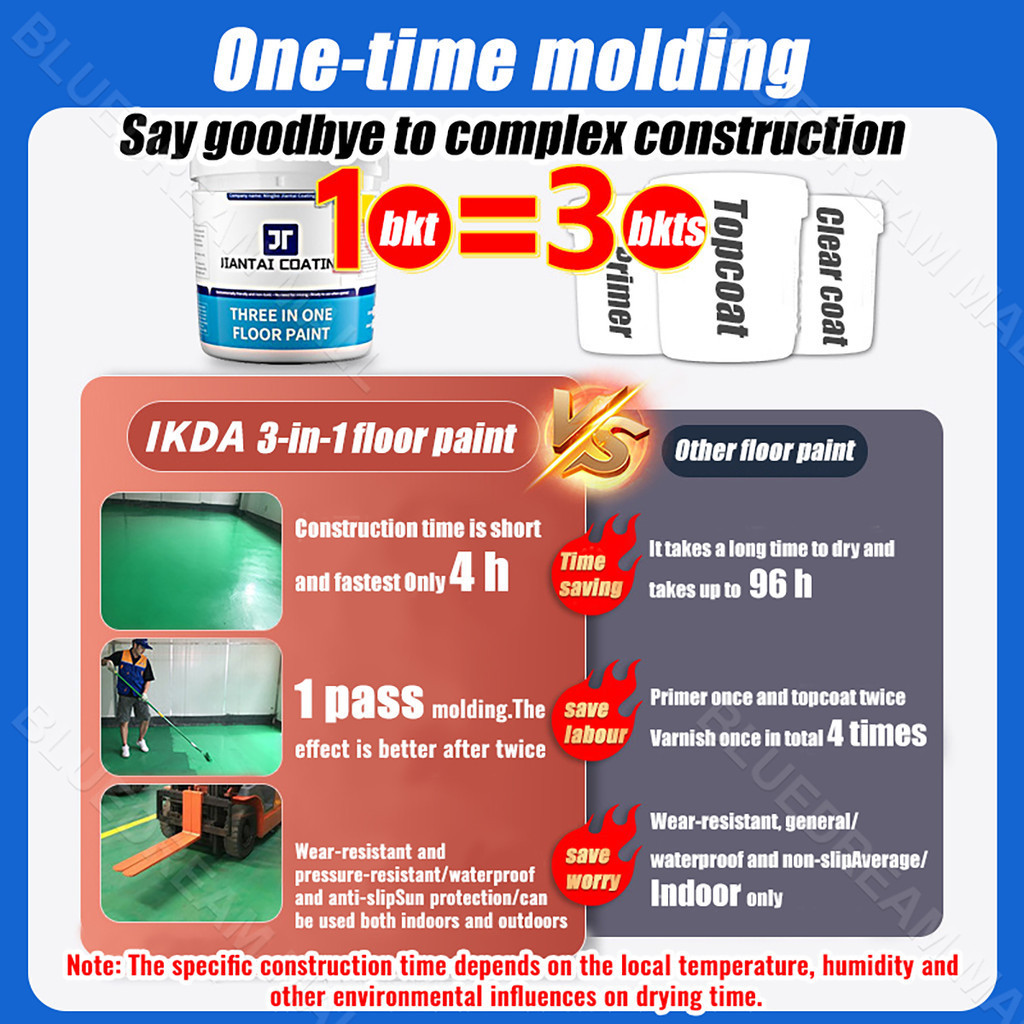 3 In 1 Epoxy Floor Paint Water-Based 1L Gloss & Matte Protective Waterproof and Sunscreen Coating + Varnish COCOPET