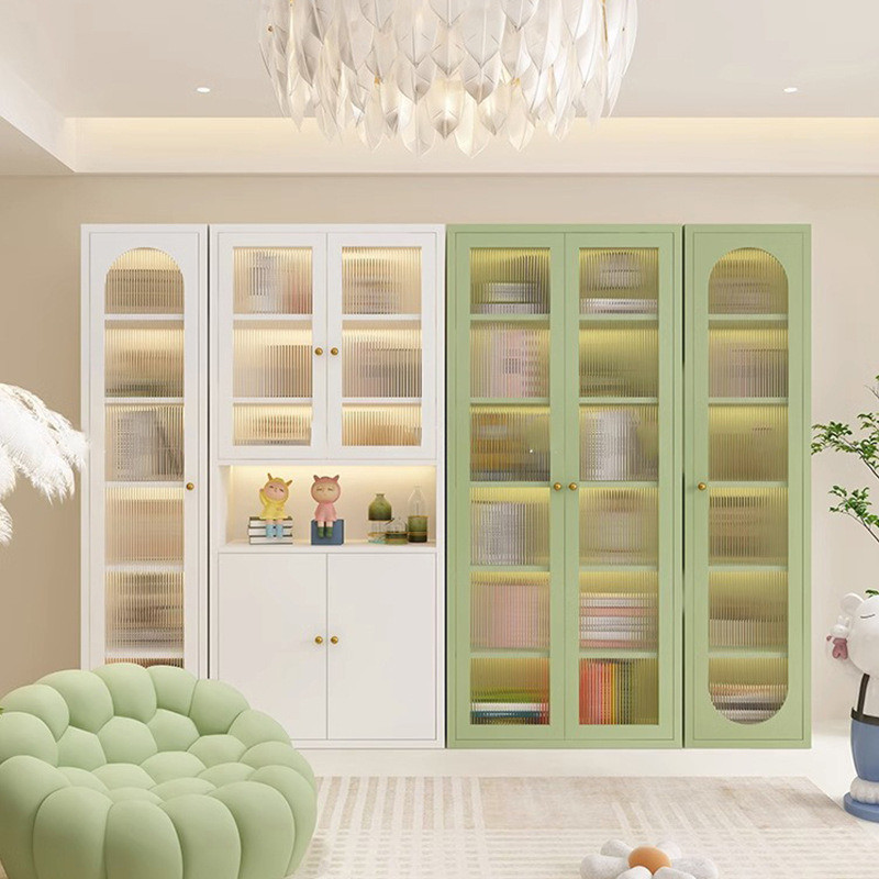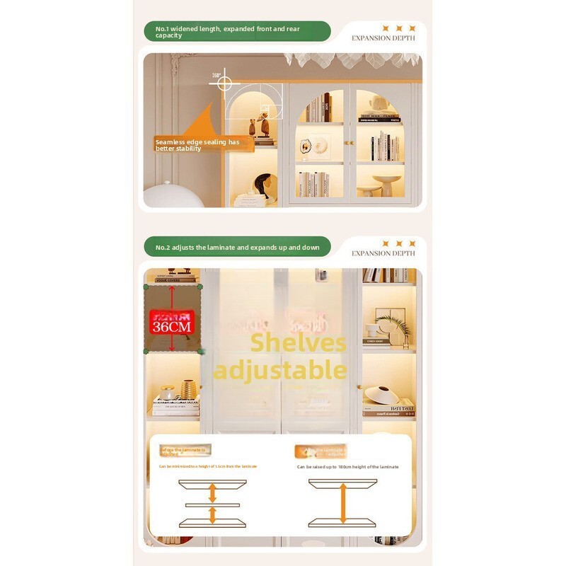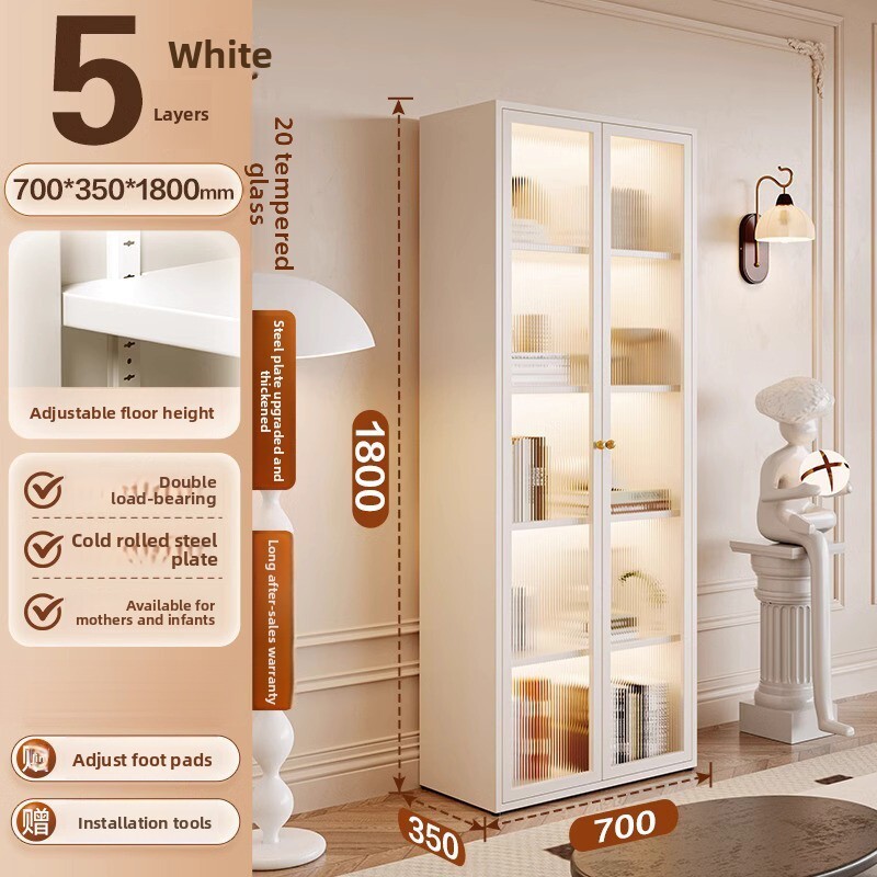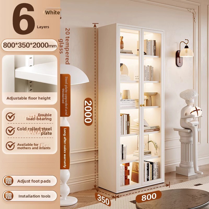 🔥Display Cabinet Steel Storage Cabinet With Glass Door Storage Cabinet Home Book Shelf