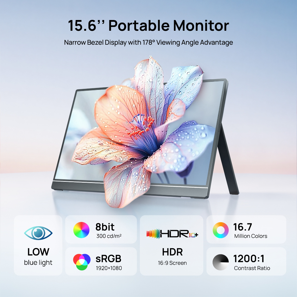 ARZOPA Portable Monitor A1- 15.6'' FHD 1080P, Ultra-Slim Portable Laptop Monitor with Kickstand - IPS Display for PC, MAC, Phone, Xbox, PS5
