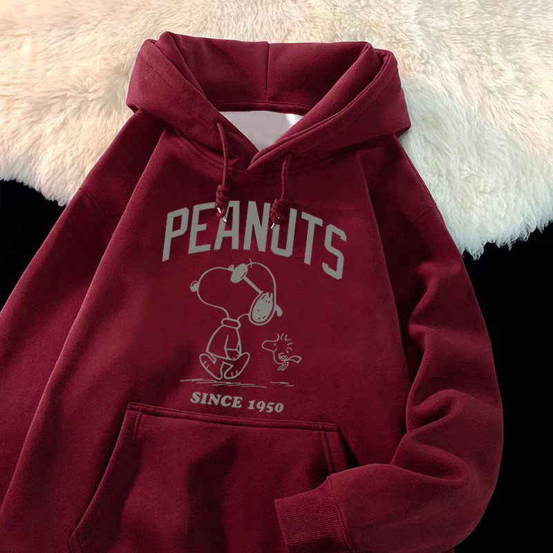 snoopy Hat t Long Sleeve Design Retro Hooded Sweatshirt University oversize Loose Top Autumn Winter Clothes Brushed hoodie women