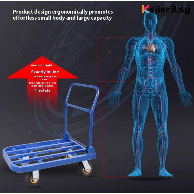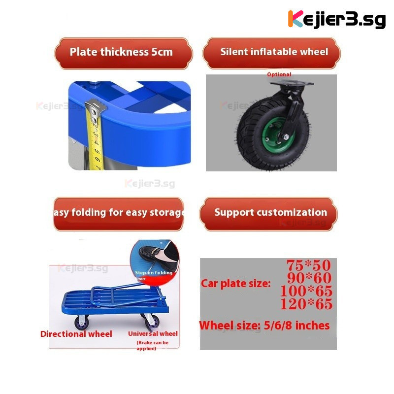 Iron Trolley Lightweight Folding Cart Trolley Silent Wheel Trolley Precision Bearings Cart kejier3.sg