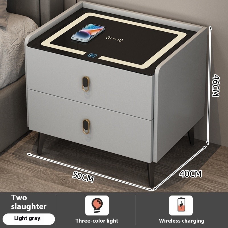 Smart Table Simple Three Draw Rechargeable Bedroom Storage Multifunctional Fingerprint Lock Bedside Cabinet Nixianjia3.Sg