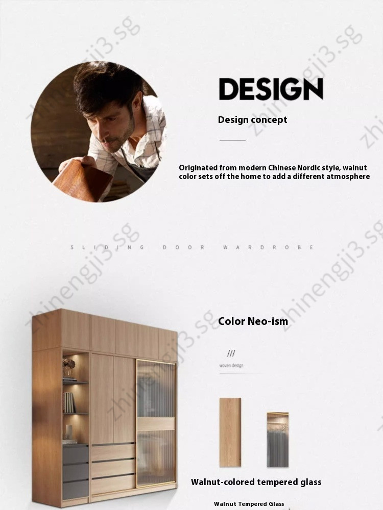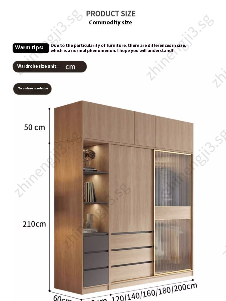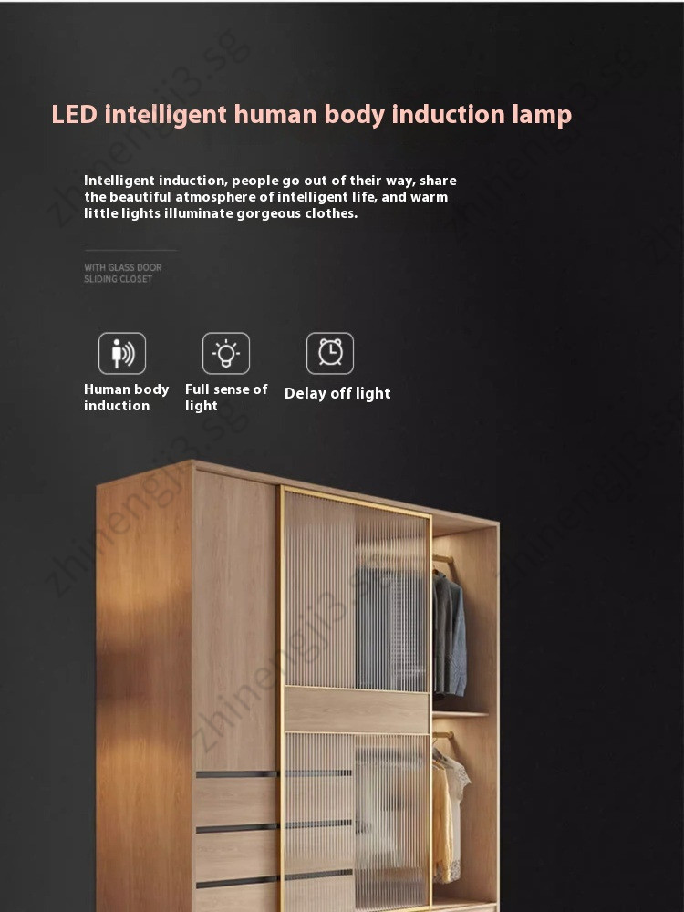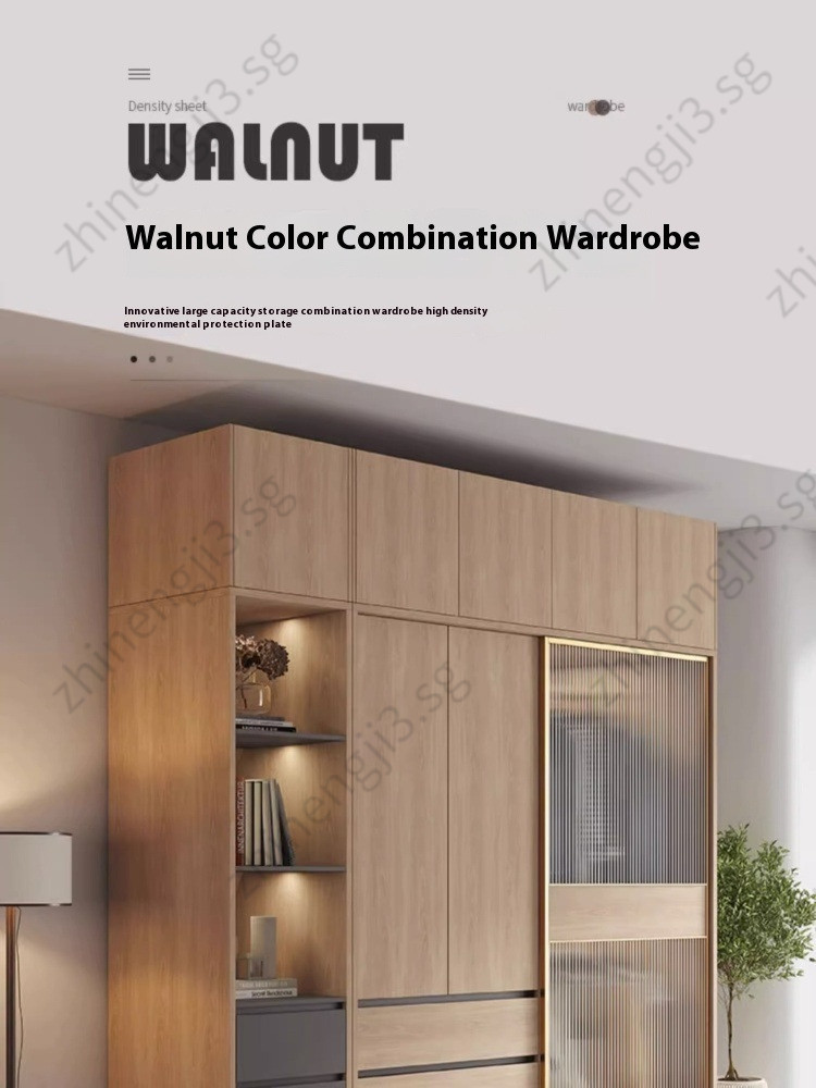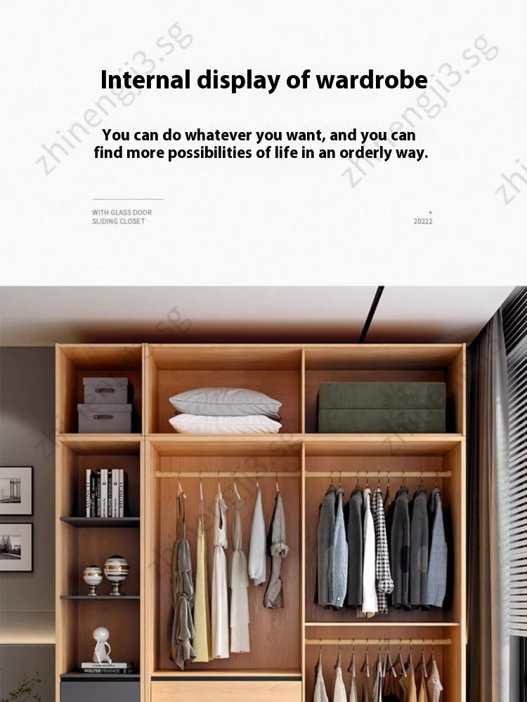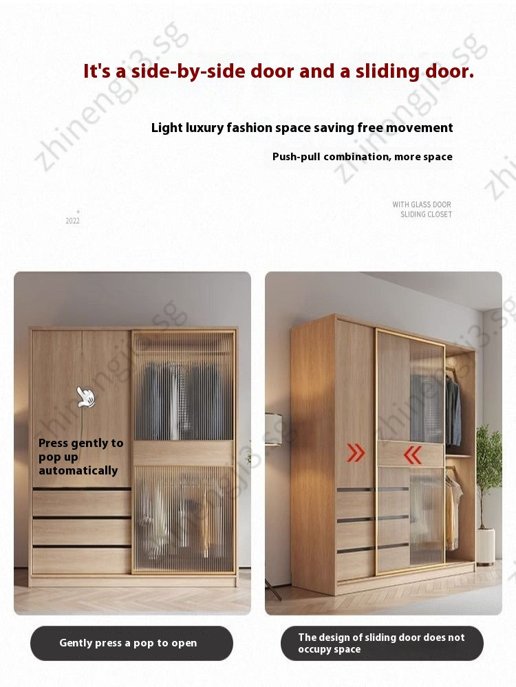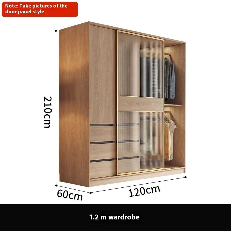 Wardrobe Modern And Simple Wooden Cream Style Cabinet Home Bedroom Small Unit Sliding Door Clothes Cupboard