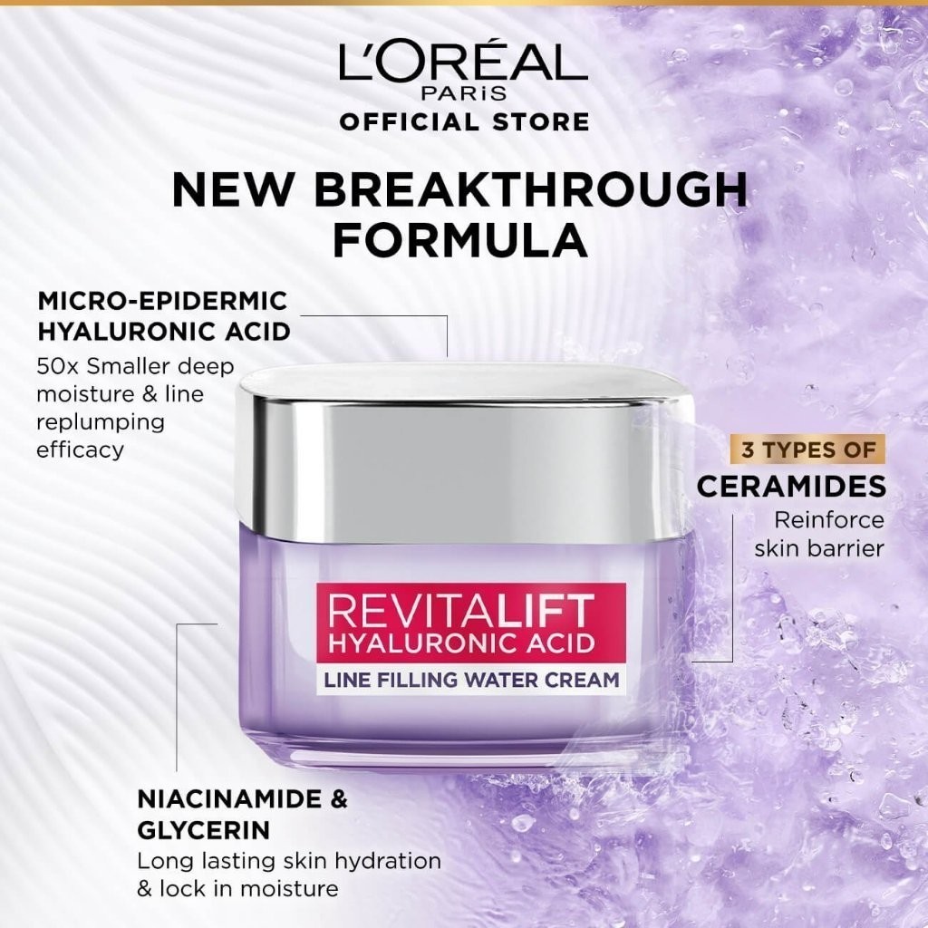 L’Oréal Paris Revitalift Hyaluronic Acid Line Filling Water Face Cream Moisturizer for Hydrates and Plumps Skin 50ml