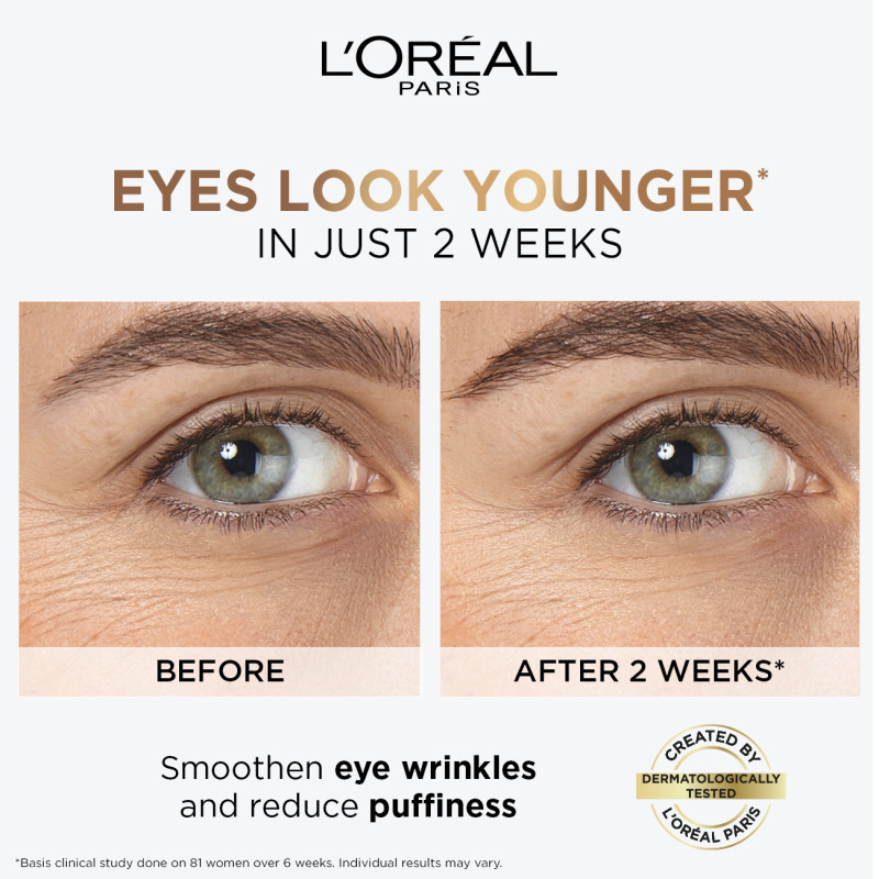 L'Oreal Paris Revitalift Eye Serum with 2.5% Hyaluronic Acid & Caffeine, 4% Niacinamide-Targets Dark Circles 20ml