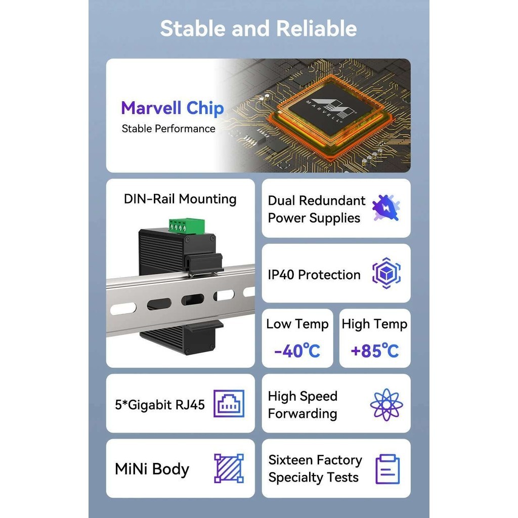 HORACO 5 Port Gigabit Industrial Switch 1000Mbps Mini Network Ethernet Switch DIN Rail Mounted Plug and Play IP40 Protection