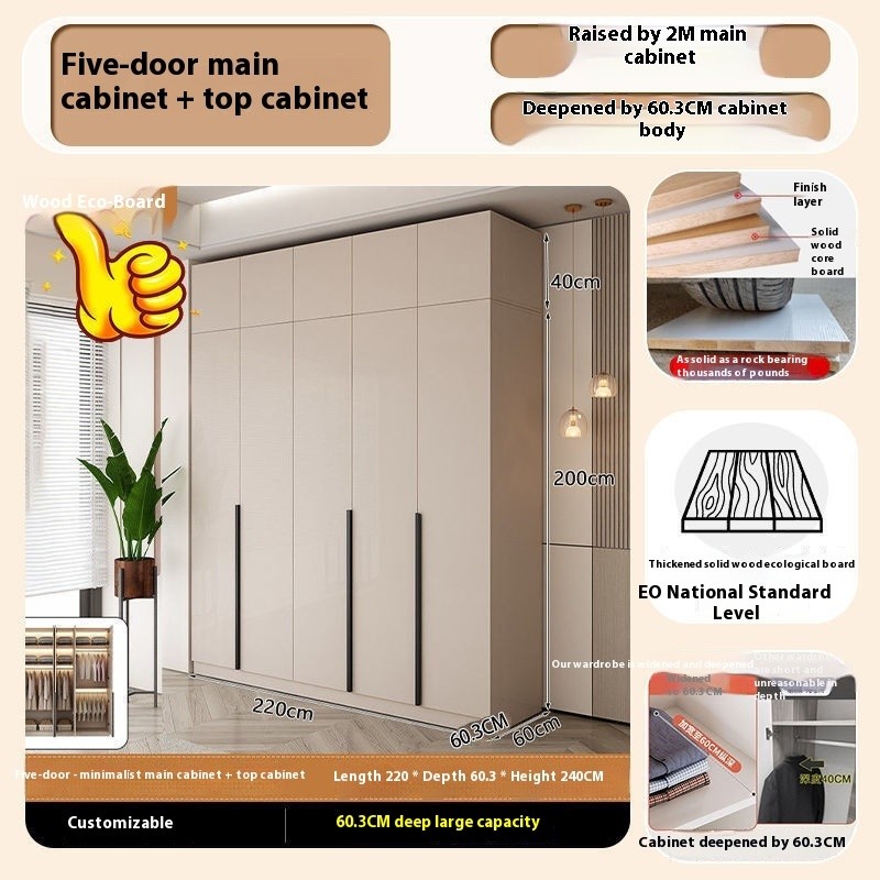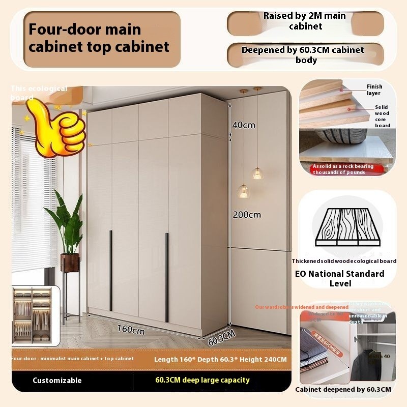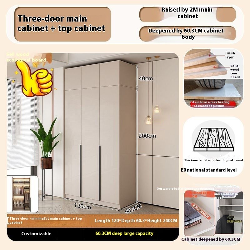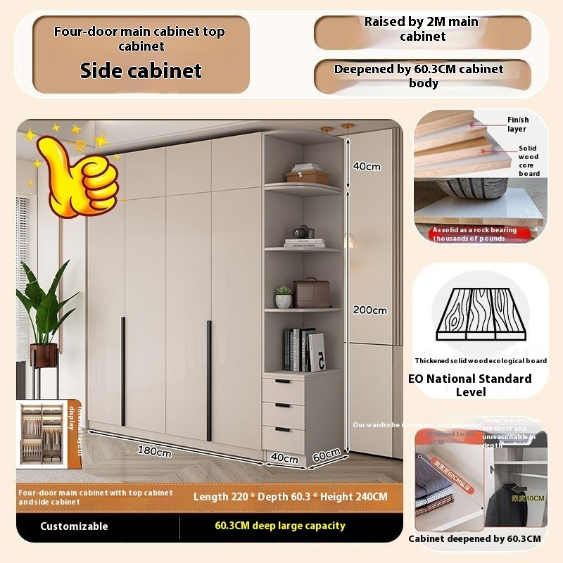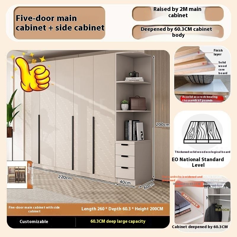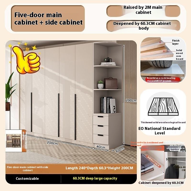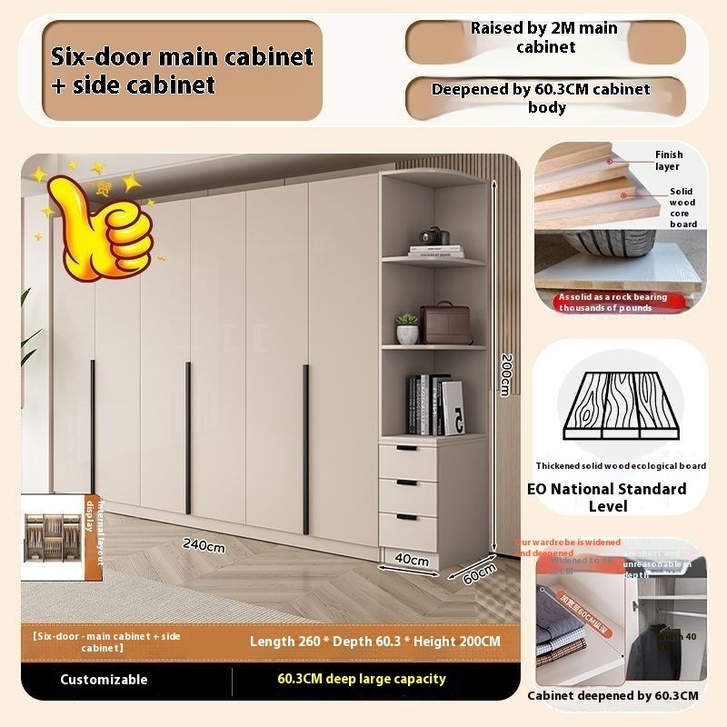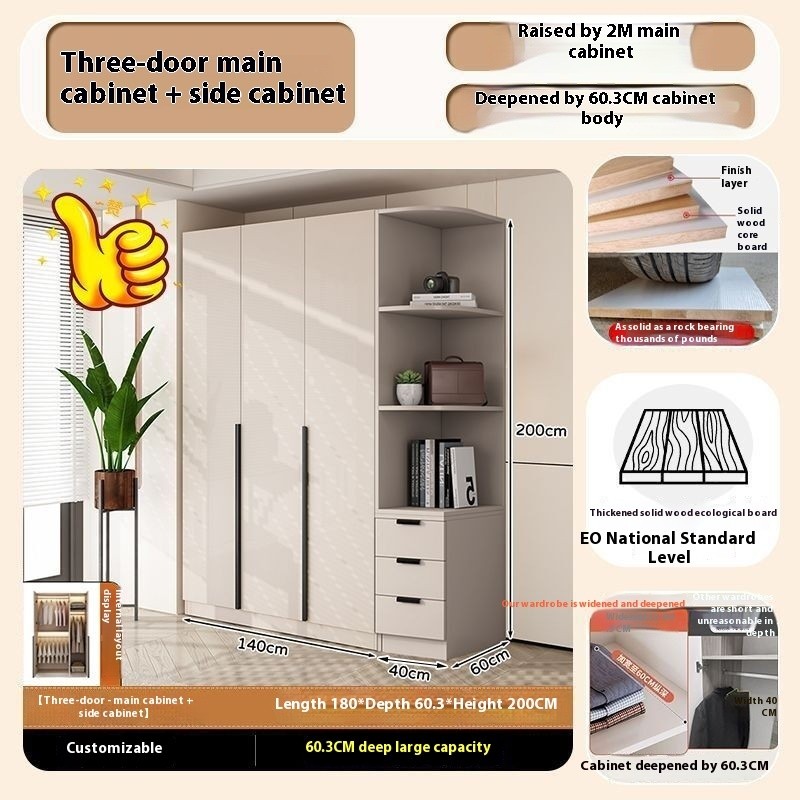 WY Wardrobe Solid Wood New Home Bedroom Small Apartment Storage Cabinet Simple Modern Popular Storage Wardrobe