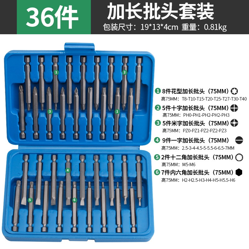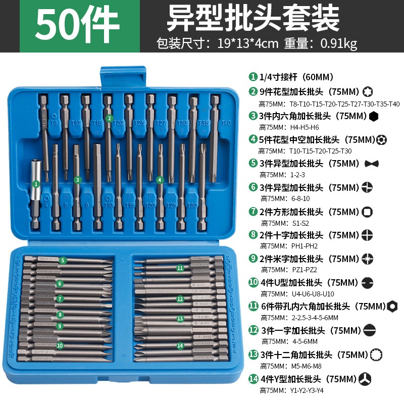 50pcs 75mm 1/4" Extension Security Screw Bits Set with Case, Hex, Star Bits, Phillips, Square, Ph2, Hex, Pz2 Screw Bits