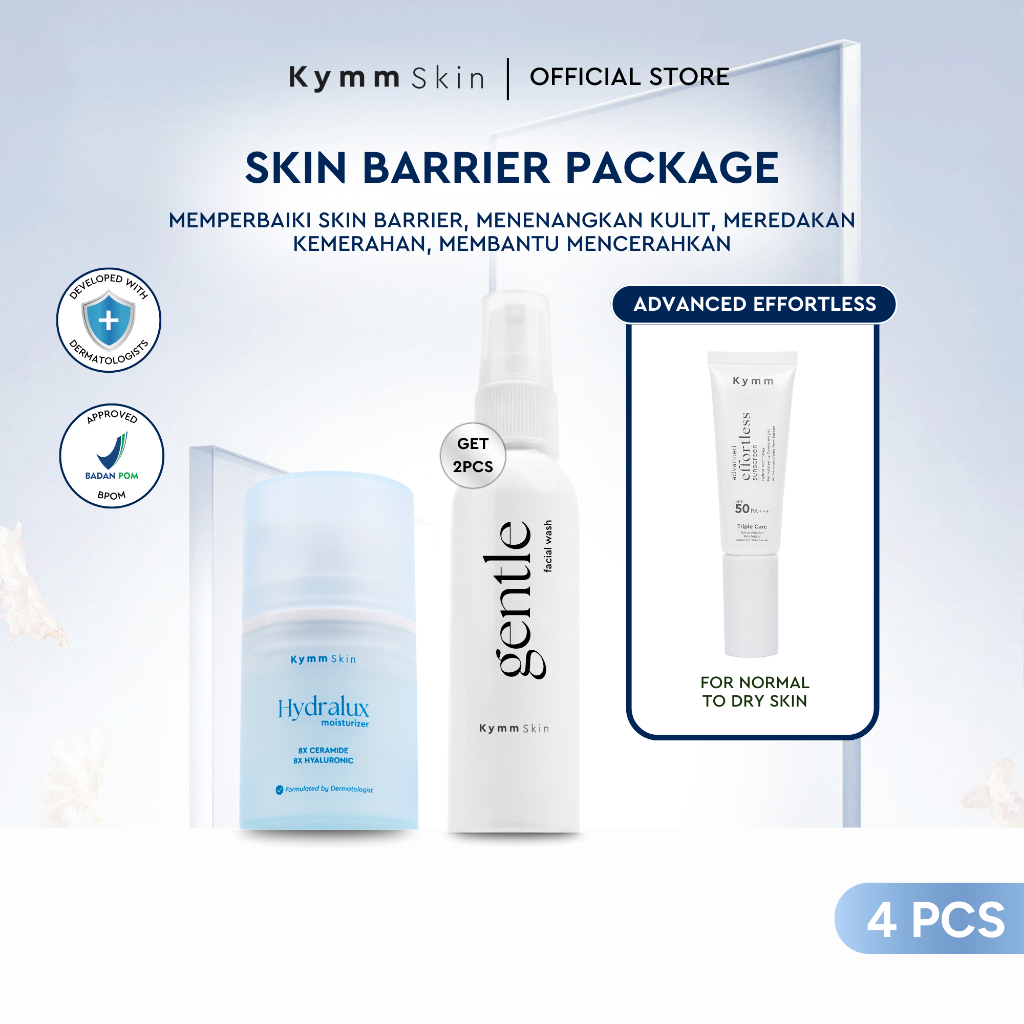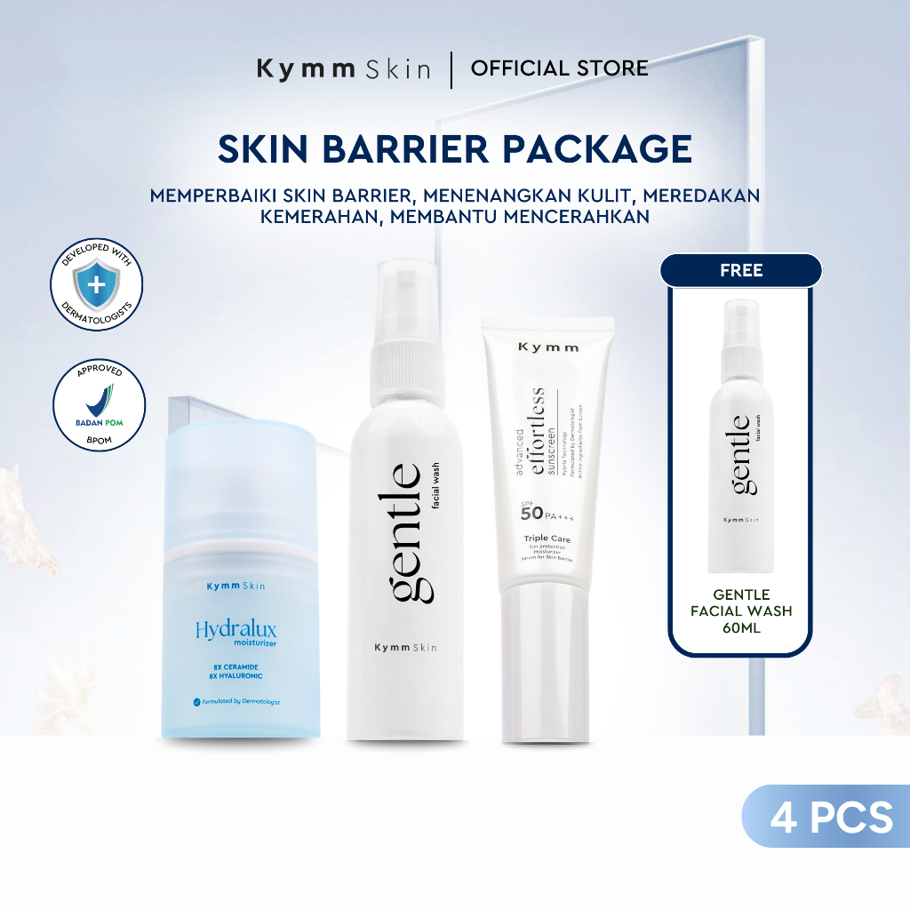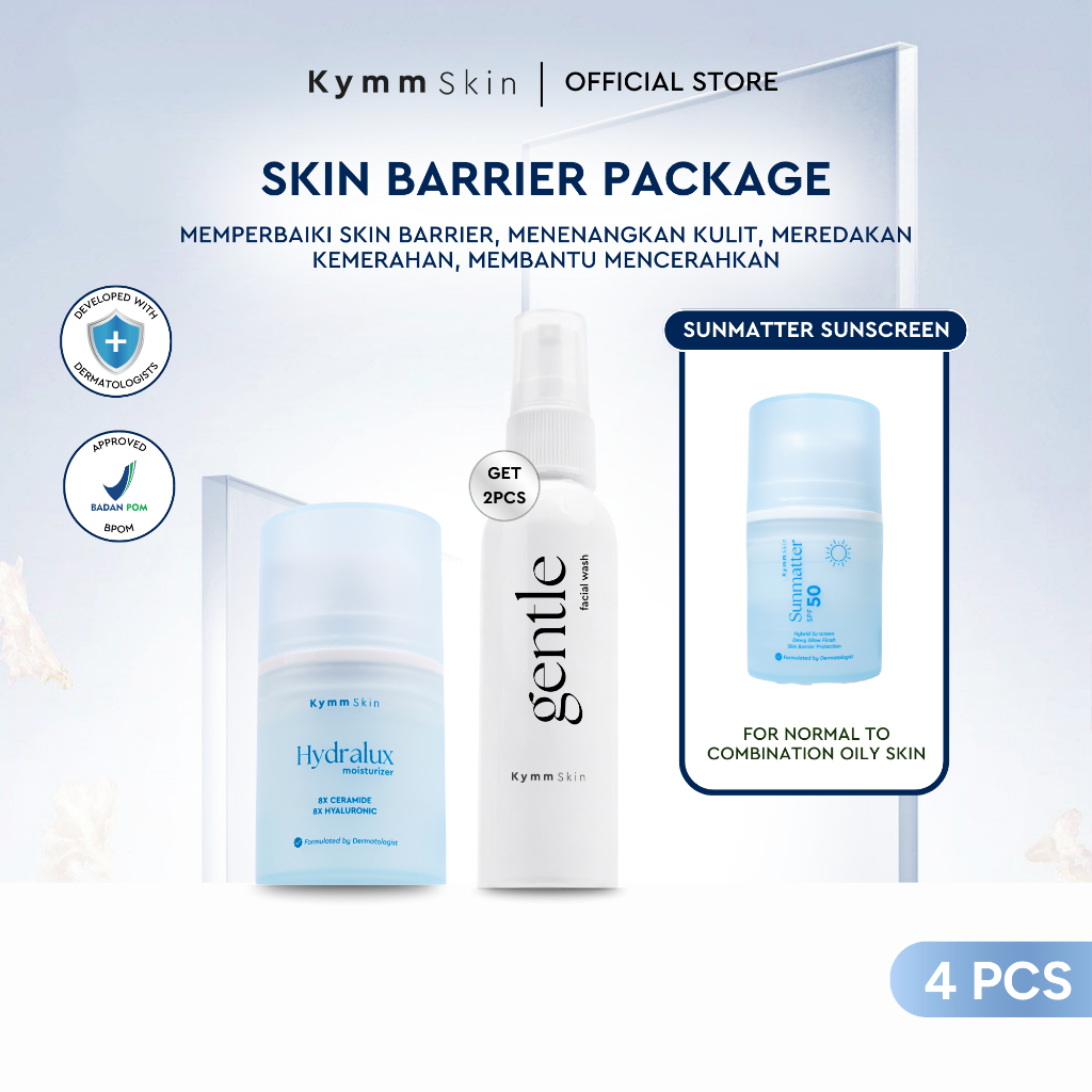 [4pcs] [Free Gentle Facial Wash 60ml] KYMM SKIN Skin Barrier Bundle [Gentle FW 60ml, Hydralux Moisturizer, Sunscreen] Skincare Set