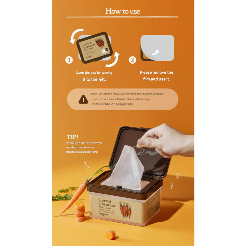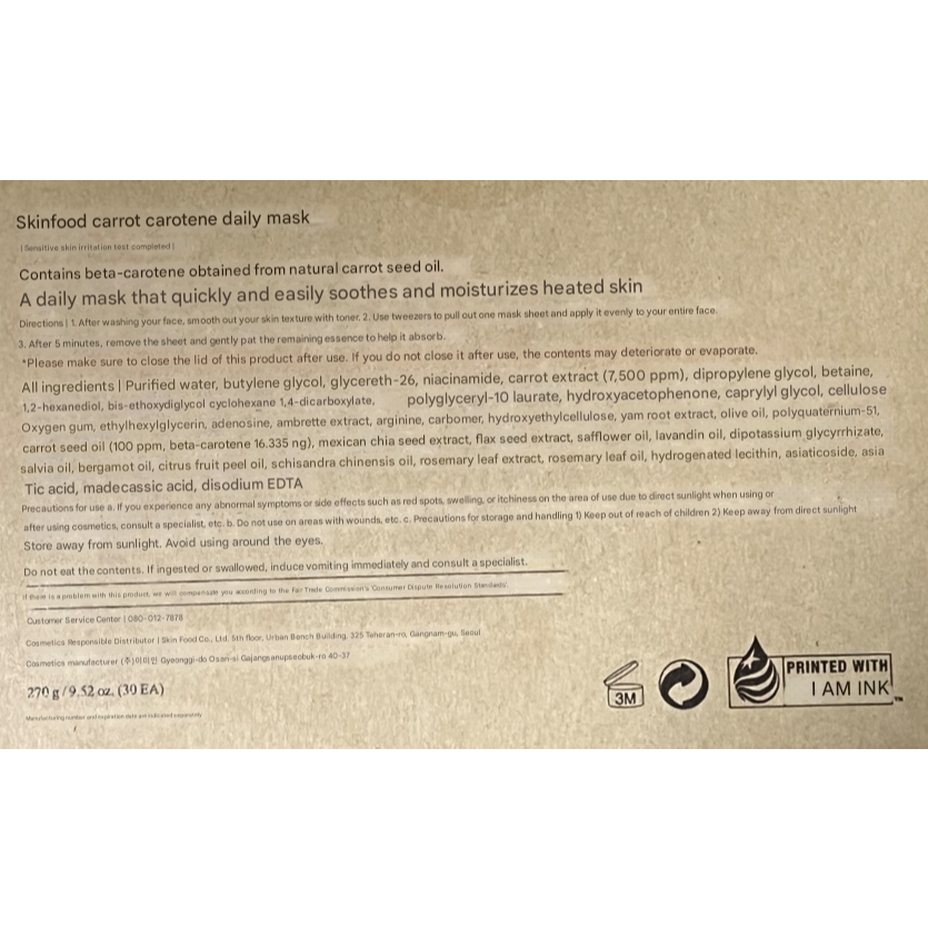 [SKINFOOD] Carrot Carotene Daily Mask – 30 Sheets for Soothing & Hydrating Care