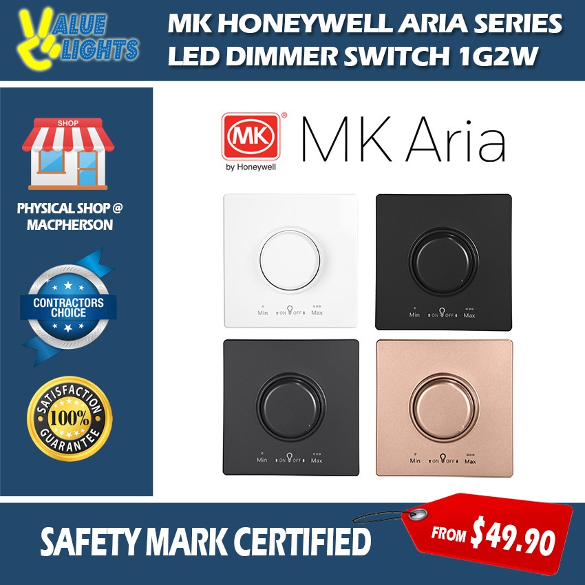 MK Honeywell Aria LED Dimmer 2 Way White Black Grey Rose Gold