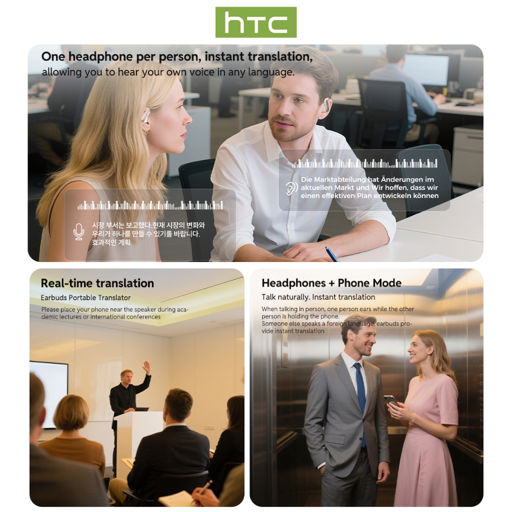 HTC NE52 AI Translation earbuds bluetooth 6.0 earbuds Real-time Translation 134 languages bluetooth earphone HiFi Al wireless headphones Translation wireless headphones noise cancelling earbuds Long Battery Life