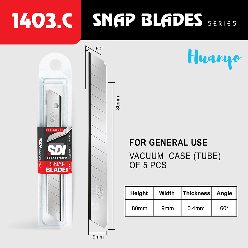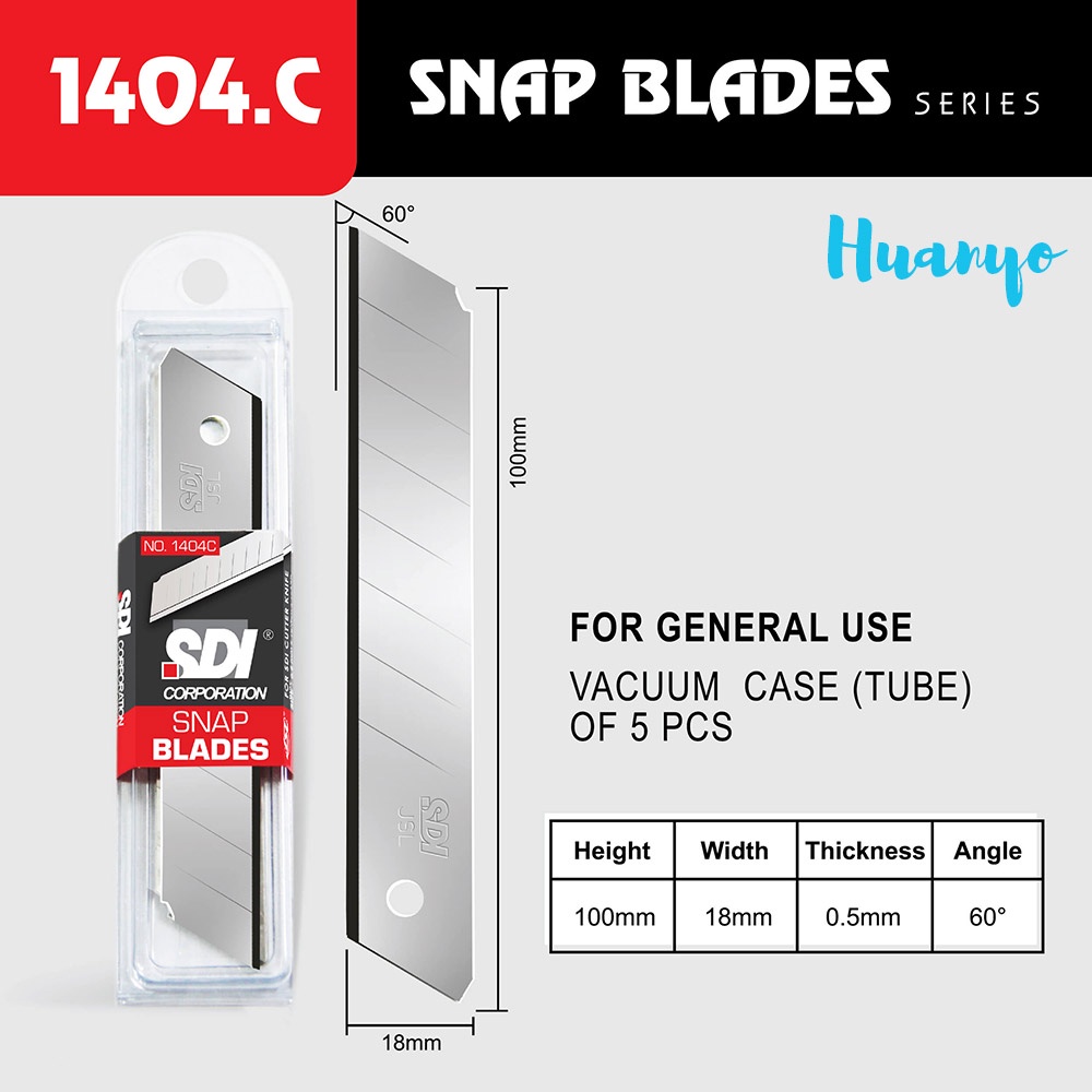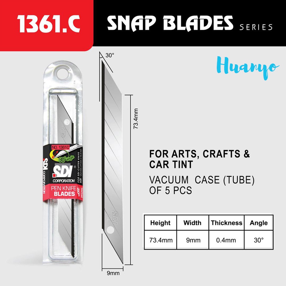 SDI Cutter Knife Blade Refill 5pcs / Tube (Small/Big , 30 / 60 Degree Angle) [1361C / 1403C / 1404C]
